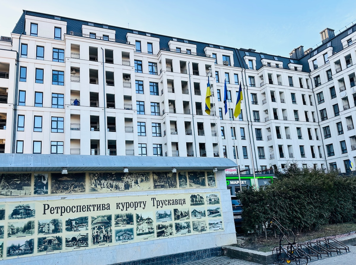 O prostoru: Dobrodošli v svojem razkošnem počitniškem domu v čudovitem najbolj znanem zdravilišču Truskavets v Ukrajini. To elegantno in sodobno dvosobno stanovanje ponuja popolno mešanico udobja, sloga in priročnosti. Nahaja se le kratek sprehod od središča mesta in mineralnih vrelcev. Lastnosti: - 1 velika zakonska postelja - 2 ločeni postelji - raztegljiv kavč - Eleganten bivalni prostor - klimatska naprava v celoti - Hitra povezava Wi-Fi - Sodobna in popolnoma opremljena kuhinja - velika terasa - čista in sveža kopalnica - skupni prostor za žar