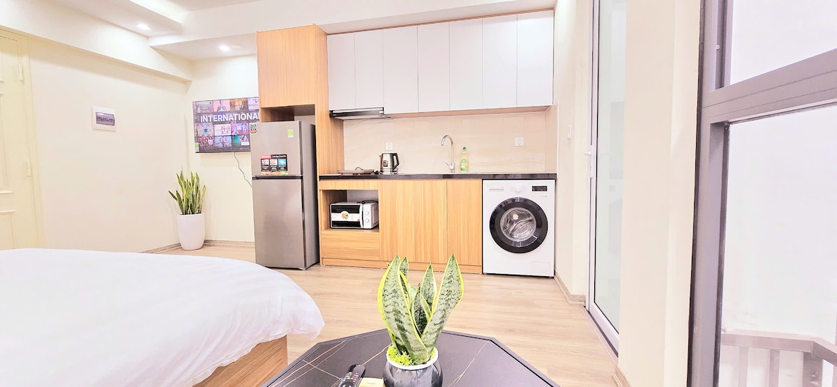 - Garsonjera z zanesljivim omrežjem Wi-Fi se nahaja v slikoviti stari stavbi, prekriti z bujnimi zelenimi trtami, obrnjenimi proti Westlakeu - Le 30 minut vožnje od letališča in 10 minut hoje od stare četrti - Območje ima živahno skupnost izseljencev in številne kavarne, restavracije in salone, ki zagotavljajo živahno, vendar mirno zatočišče na polotoku, obdan z Westlake, z minimalnim prometom - Pohištvo, izdelano iz predelanega lesa v naši delavnici, spodbuja okoljsko trajnost in lokalno izdelavo.
