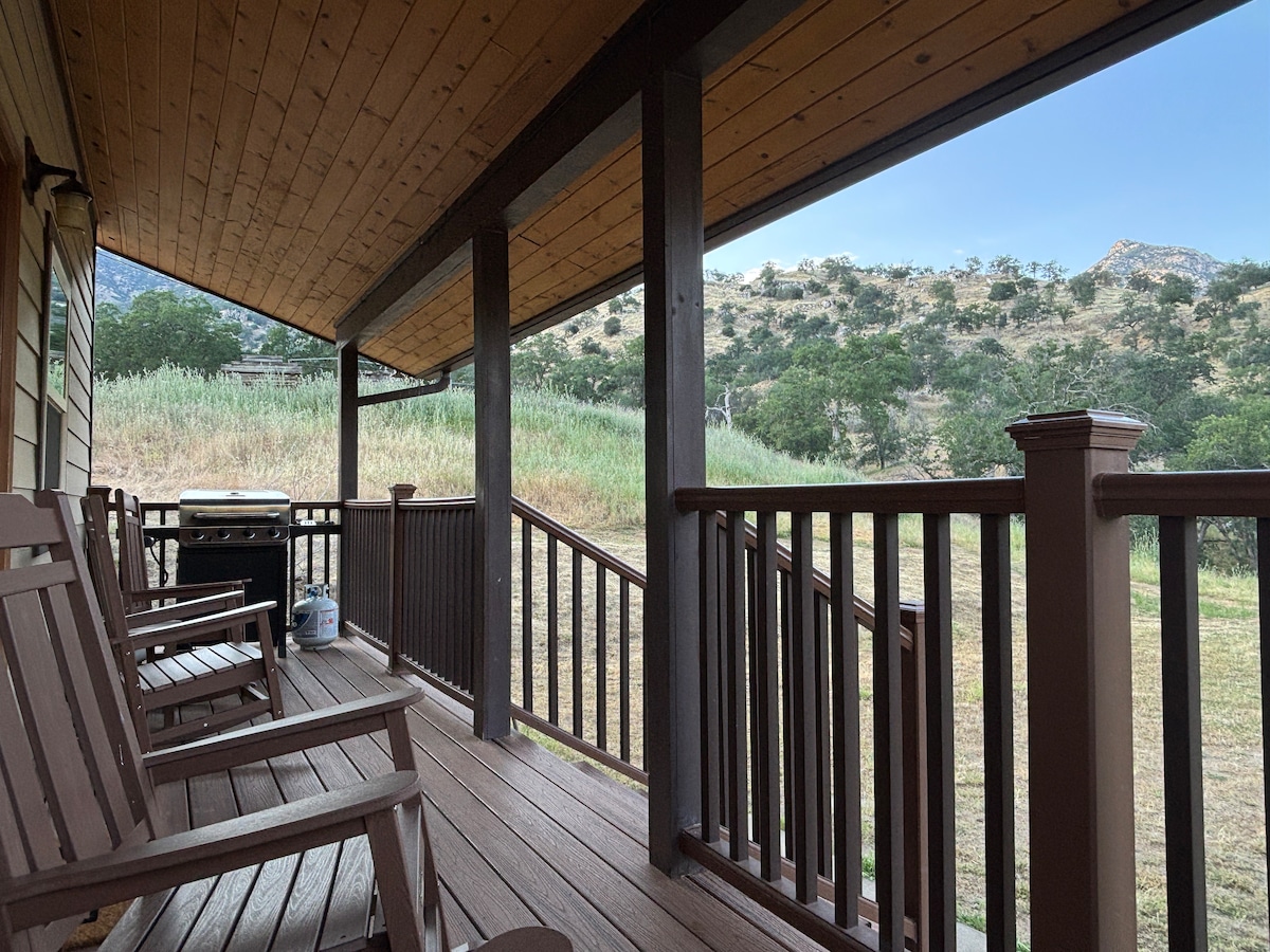 You're Glamping!🌲Enjoy this ARTSY wood cabin tucked away on top of a private mountain road in the Sierra Nevada overlooking the Kaweah River & Sequoia Nat’l Park. A one-of-a-kind getaway experience—beautiful views & a path that leads to a private beach & swimming holes. Kitchenette: mini-fridge, microwave, French Press coffee, cutlery et al. BBQ grill is right outside your door. 🍔🌭🥩🍗 Outdoor shower! is HOT year-round & your private bathroom is a short 5-min. walk away. See you soon!