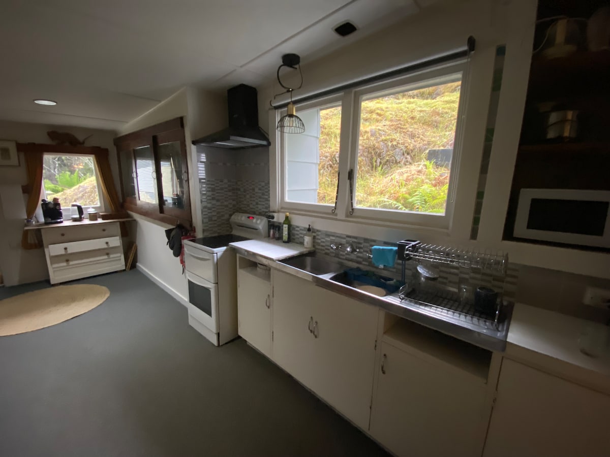 Welcome to Seaforth! A lovingly renovated fishing shack on 10 acres overlooking Macquarie Harbour. Accommodating up to 4 guests. This cozy yet comfortable shack features one queen-size and one king-size bed. The shack has been renovated with a mix of recycled, new, and natural materials. Two outdoor firepit areas to enjoy. There is an eclectic selection of books, records, and games to explore!
