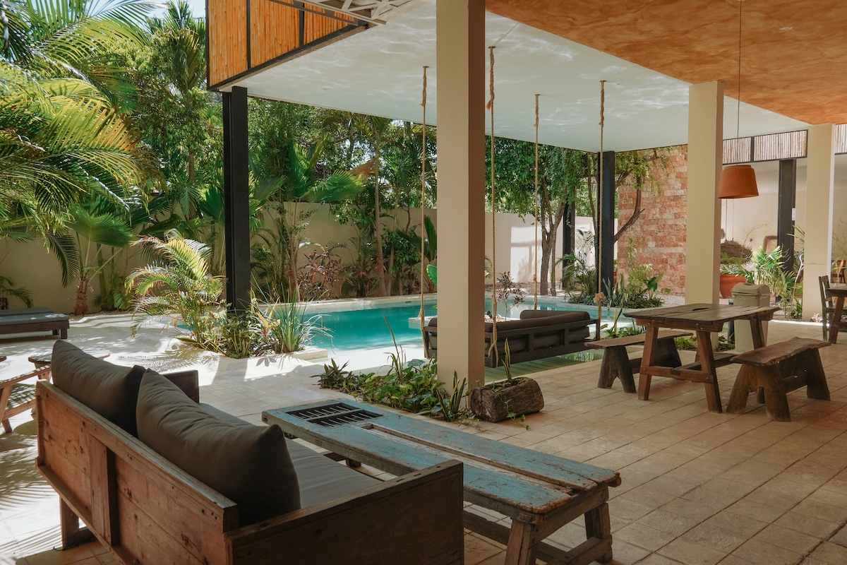 Dobrodošli v Hemmi -»doma« v švedščini - vili, ki je zasnovana za srečanja, umike in praznovanja. Hemma je bila zgrajena izključno za vašo skupino in vas vabi, da se ponovno povežete, proslavite in sprostite v Tulumu v ograjeni skupnosti. Uživajte v vsakodnevnem čiščenju, negi bazena in vrta ter vodji doživetij za goste, ki bo poskrbel za vse, od zasebnega kuharja do wellness ritualov. Vsaka podrobnost je zasnovana tako, da združi ljudi – ne glede na to, ali gre za dekliški oddih, bday vikend, intimne poroke ali poslovni oddih.