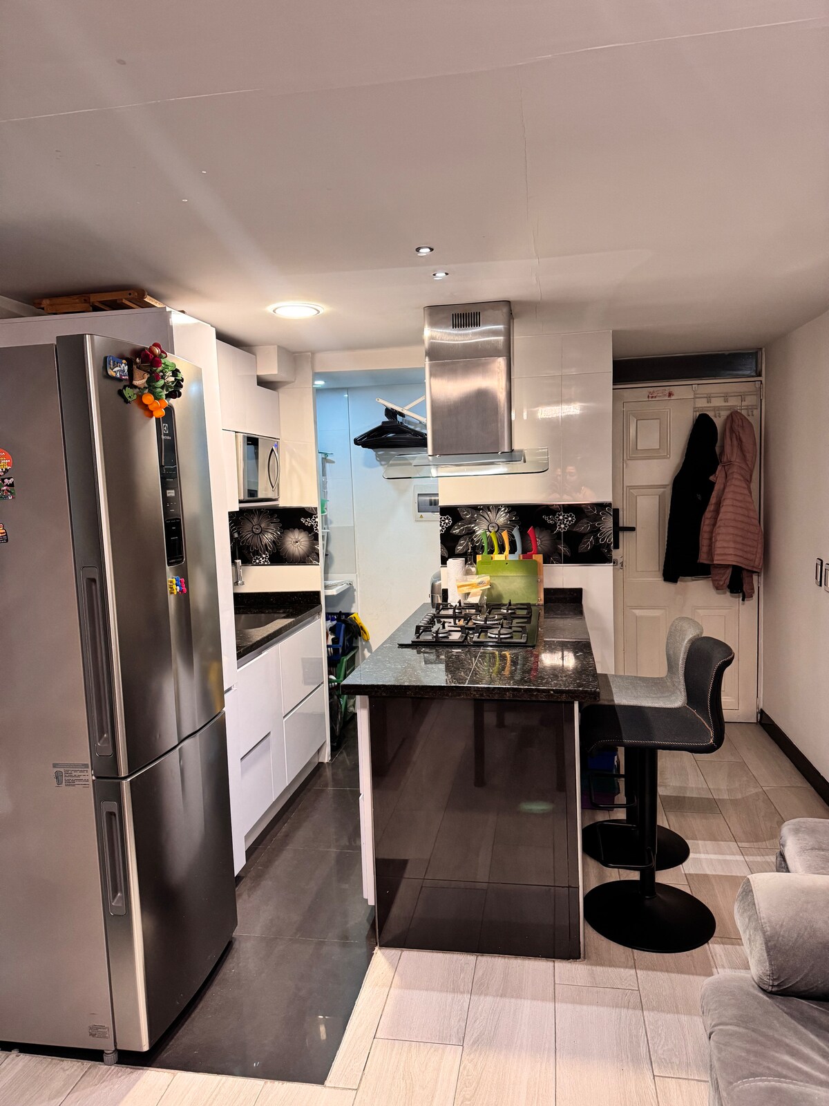 Gre za popolnoma nov prostoren dvoetažni apartma, poln dizajna, umetnosti in življenja, z 2 spalnicama, studijem in 3 kopalnicami. Prvi prostor ima široko in svetlo dnevno sobo z visokim stropom, sodobno pohištvo, edinstvene lokalne umetnine, odprto in popolnoma opremljeno kuhinjo, praktičen prostor za pranje perila, kopalnico za goste in velik balkon ter čudovit razgled na Bogotá. Samo za zavestne ljudi, ki spoštujejo harmonijo prostora.
