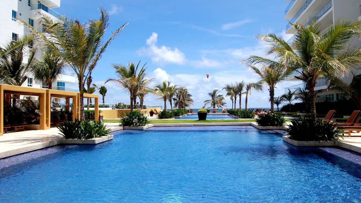 Prostorno in elegantno stanovanje s slikovitim razgledom na Ciénaga de la Virgen in neposrednim dostopom do plaže. Uživajte v velikem balkonu, hitrem Wi-Fi-ju, televizorju in vrhunskem zvočnem sistemu Bose. Idealno za sprostitev ali delo na daljavo. Kompleks vključuje 3 bazene (vključno z enim za otroke), masažno kad in popolnoma opremljeno telovadnico. Idealno za pare, družine ali samostojne popotnike, ki iščejo udobje, naravo in priročnost. Spodbujamo varen in spoštljiv prostor za vse goste.