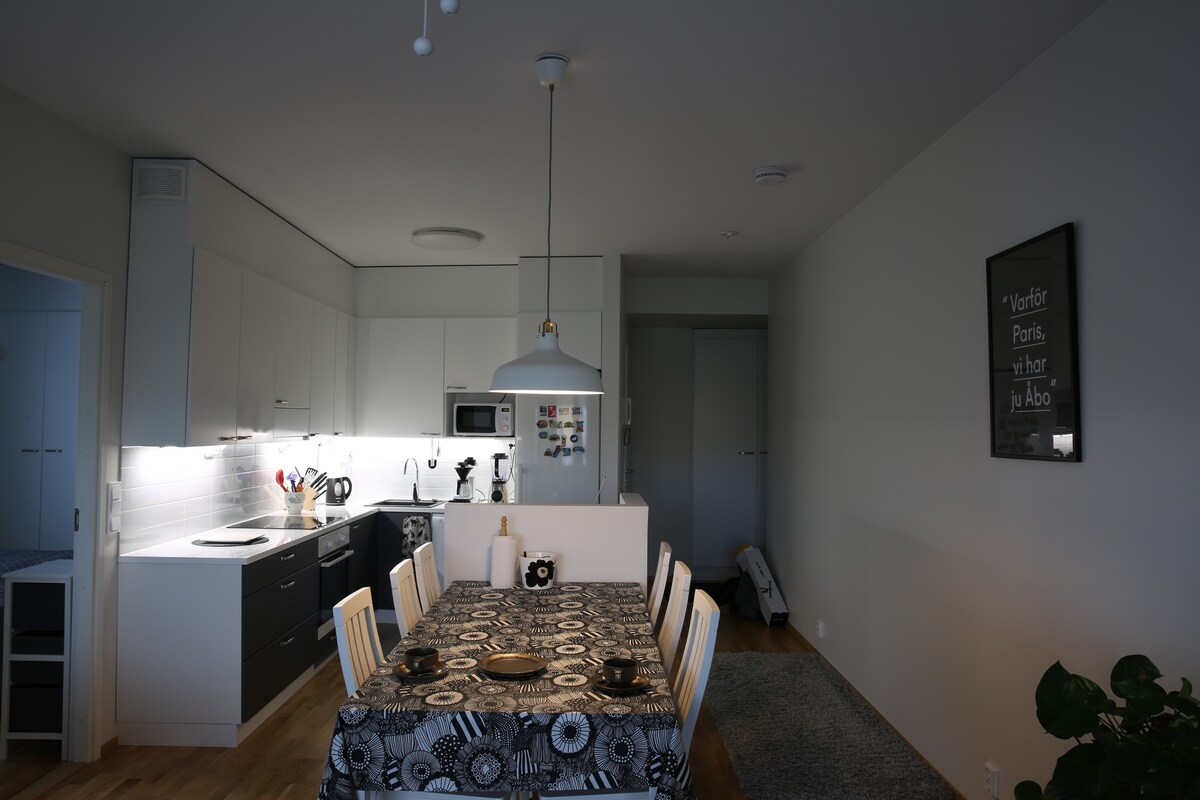 Minä ja puolisoni toivotamme tervetulleeksi viihtymään Turkuun! Vain 5 minuuttia linja-autoasemalta sekä useita pysäköintimahdollisuuksia. Tori, Tuomiokirkko ja jokiranta ihan vieressä kaikkine ravintoloineen ja kahviloineen. My partner and I welcome you to a lovely stay in Turku! Only a 5 minute walk from the bus station and a 15 minute walk from the railway station. The market square, cathedral and riverside are right around the corner offering wonderful cafés and restaurants.