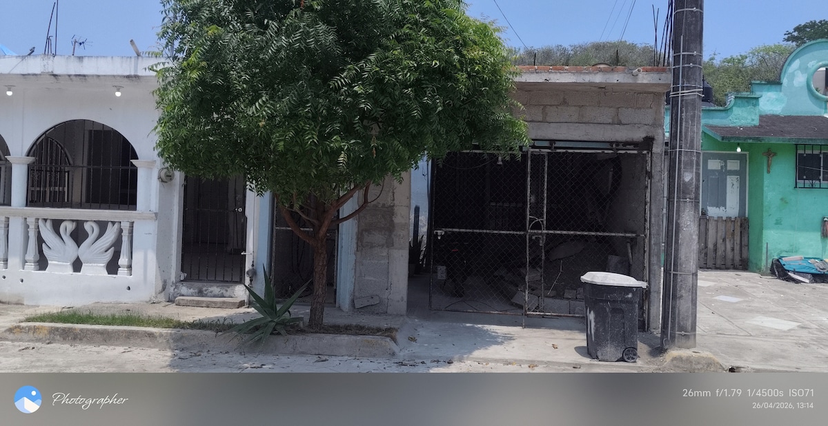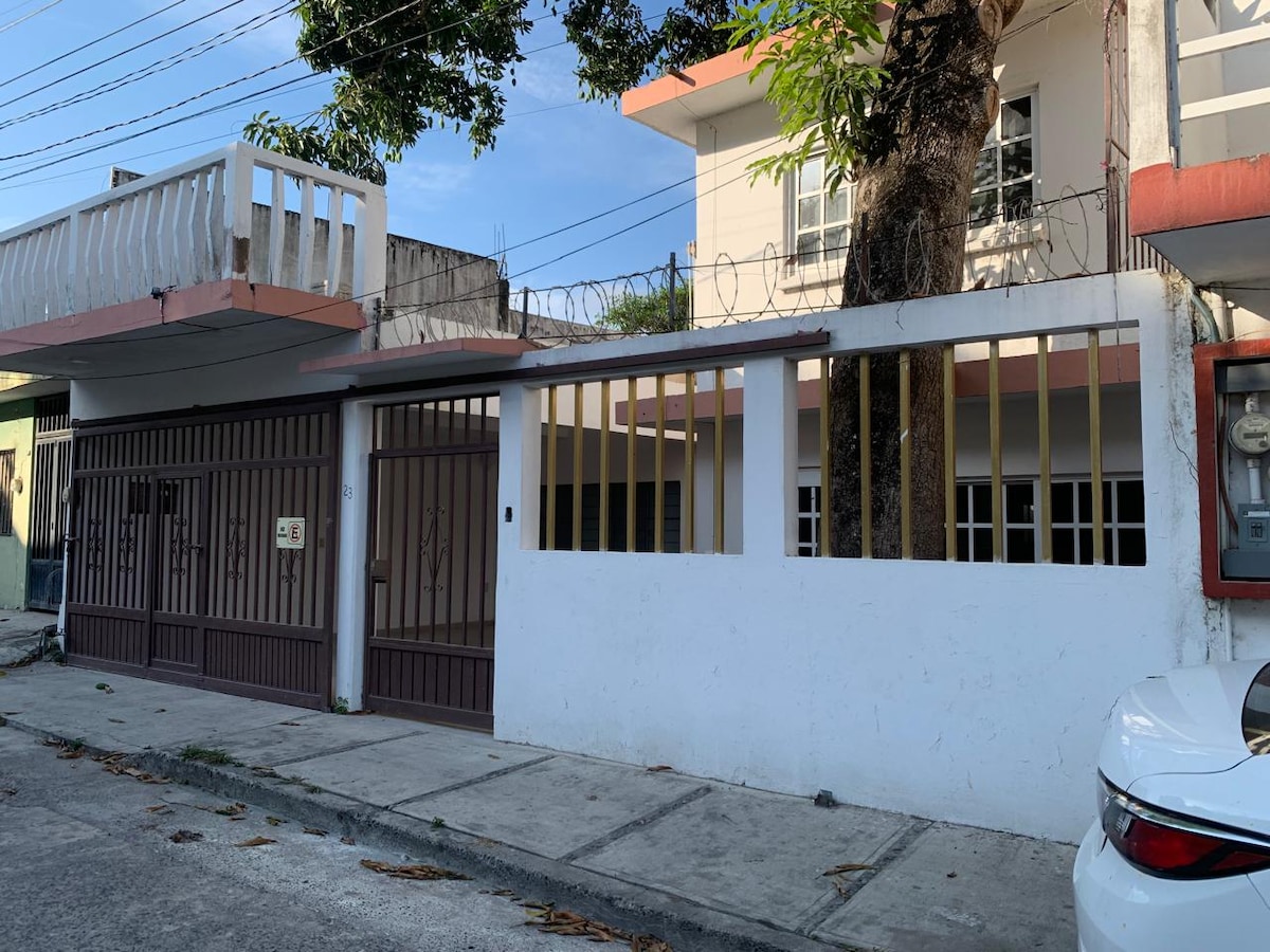 Preurejena in udobna hiša le pet minut stran od zgodovinskega središča in 15 minut od plaže, popolnoma čista in opremljena, da uživate v bivanju v Tuxpan Veracruz Mex. Ima parkirno storitev za eno vozilo v isti namestitvi, dve spalnici z dvema zakonskima posteljama (za največ 8 oseb)in teraso, kopalnico z WC-jem in WC, do 8 oseb. Veliko razsvetljave in družinsko vzdušje.