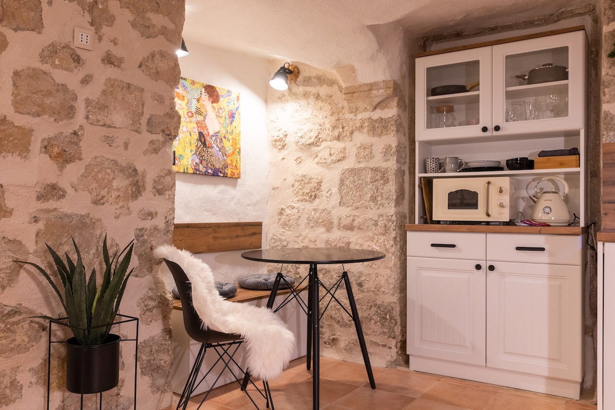 Prebudite se ob sončni svetlobi, ki preliva skozi strešna okna v tem sodobnem predelanem stanovanju z zgodovinskim šarmom. Poskusite kozarec vina in opazujte, kako svet zahaja s terase tega posodobljenega stanovanja v zgodovinski stavbi. Vaše zaupanje in varnost sta na prvem mestu. Studio se nahaja ob vhodu Buza Gate, enem od treh glavnih vhodov v cono za pešce v starem mestnem jedru Dubrovnika, zaradi česar je vaš prihod brez težav in stopnic, tudi s prtljago.