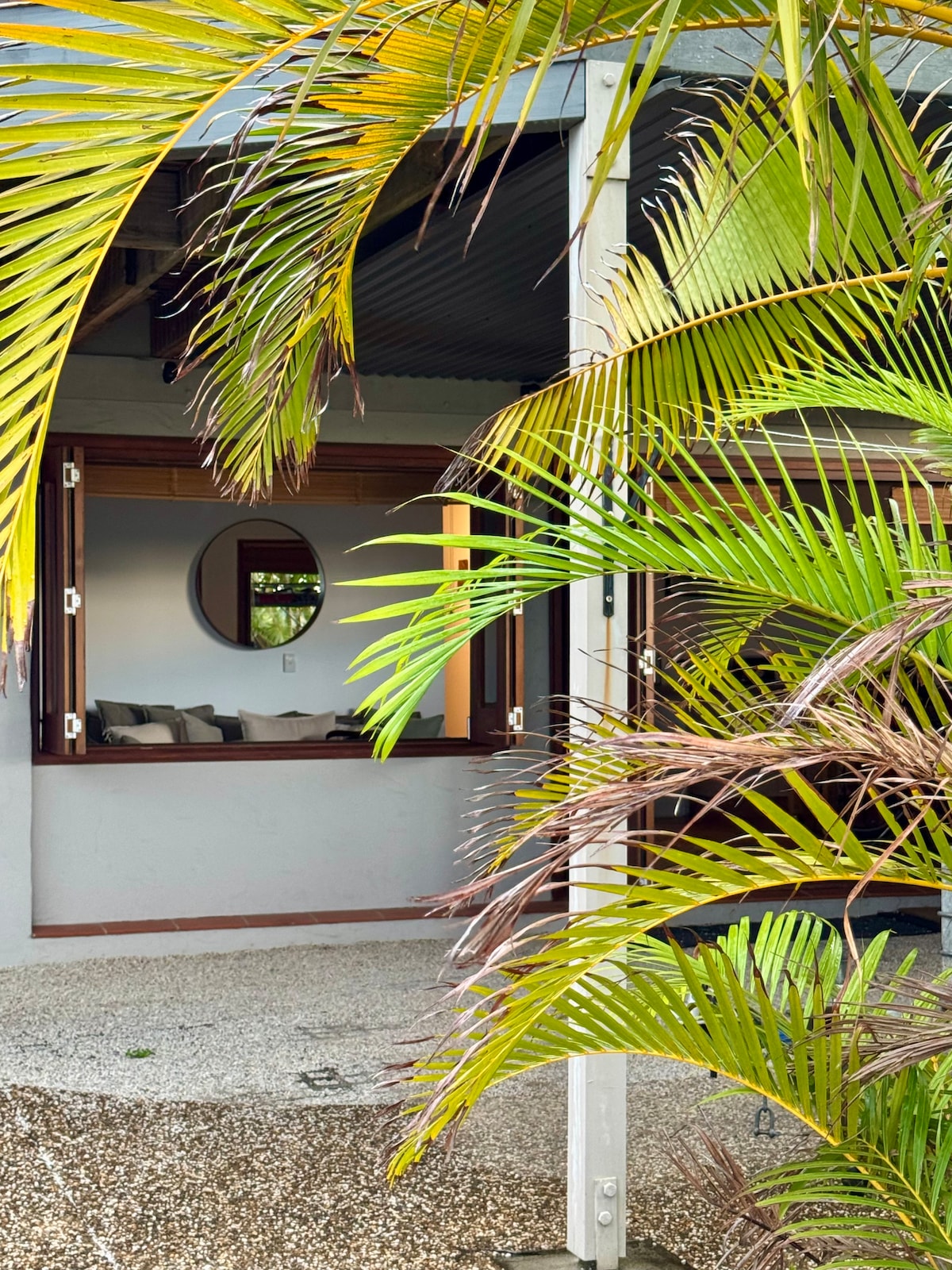 An original 1950's beach shack and garage, renovated and updated in 2024 to become house and garden pavillion featuring beautiful design, materials and furniture. Located in a secret and unspoilt part of Nothern NSW, the house sits right on the Tweed river but backs onto a reserve, a lagoon and undeveloped coastal forest that leads you straight onto Dreamtime beach. The house and pavillion are connected by a terrace, outdoor shower and benches and surrounded by native coastal gardens.
