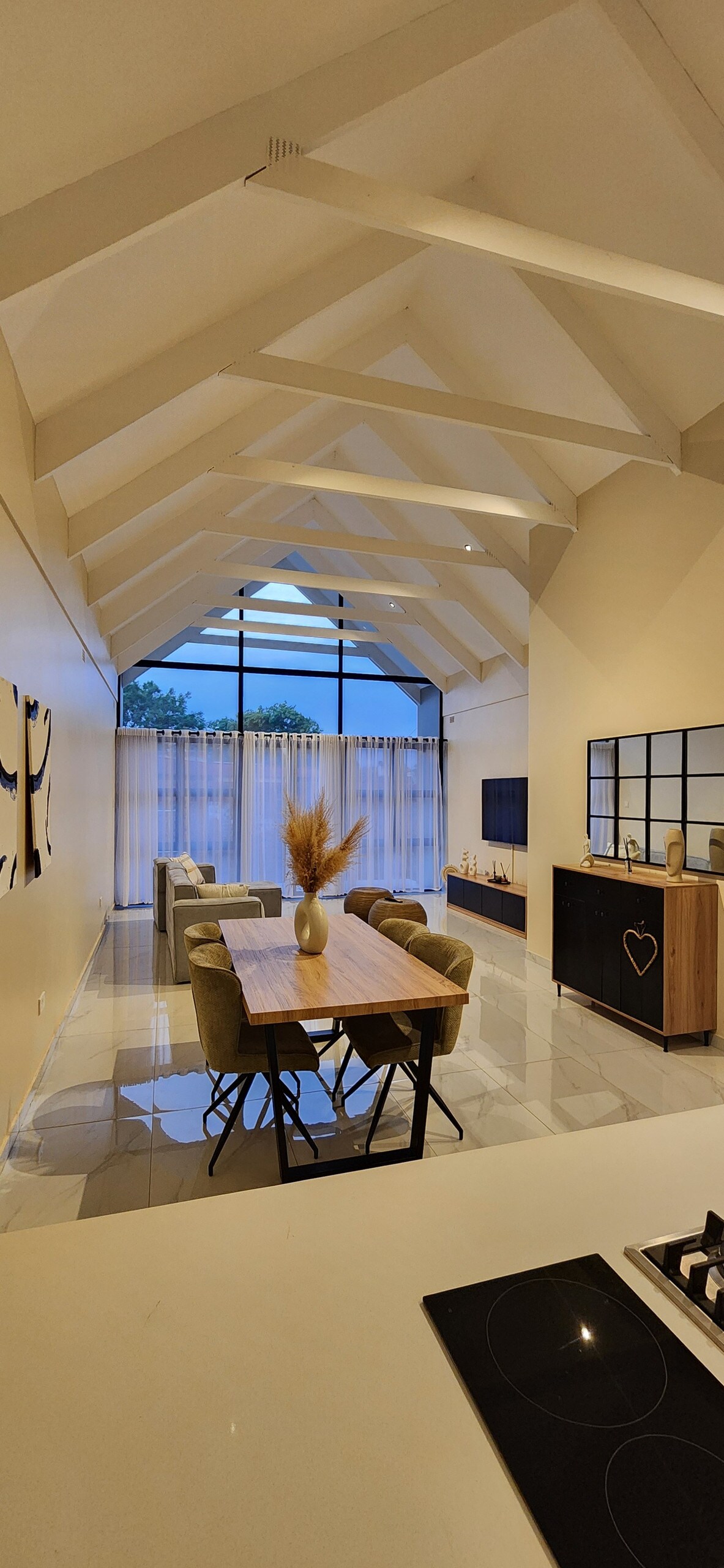 Dobrodošli v svojem sijočem mestnem zatočišču! Ta svetla in zračna hiša se nahaja v varnem kompleksu, le 10 km od poslovnega središča Harareja. Preplavljena je z naravno svetlobo, odlikuje pa jo sodobna eleganca in velikodušni prostor za sprostitev družin. Od prostranih bivalnih prostorov do mirnih spalnic – vsaka podrobnost ponuja udobje, slog in brezskrbnost. Na voljo so tudi popolna rezervna solarna energija, rezervoar za vodo, pralni stroj in enostaven dostop do nakupovalnega središča Madokero, ki je najbližje.