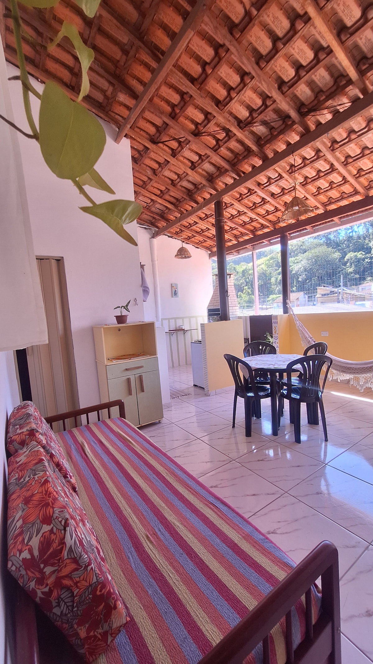 Rustikalna hiša na plaži Vermelha do Centro, 3 minute od morja, v mirni ulici. Solarada, obdana s tropskim vrtom, ki se nahaja sredi atlantskega gozda. Na voljo so 3 spalnice in 1 suita. Soba je integrirana s kuhinjo. Kuhinja s hladilnikom, štedilnikom, mešalnikom, lonci, pekači in drugimi pripomočki, ki so potrebni za pripravo obrokov. Na voljo je 350 MB optičnega interneta. TV Smart 43" S seboj morate prinesti rjuhe, brisače in druge predmete za osebno uporabo. Na voljo so blazine in odeje.