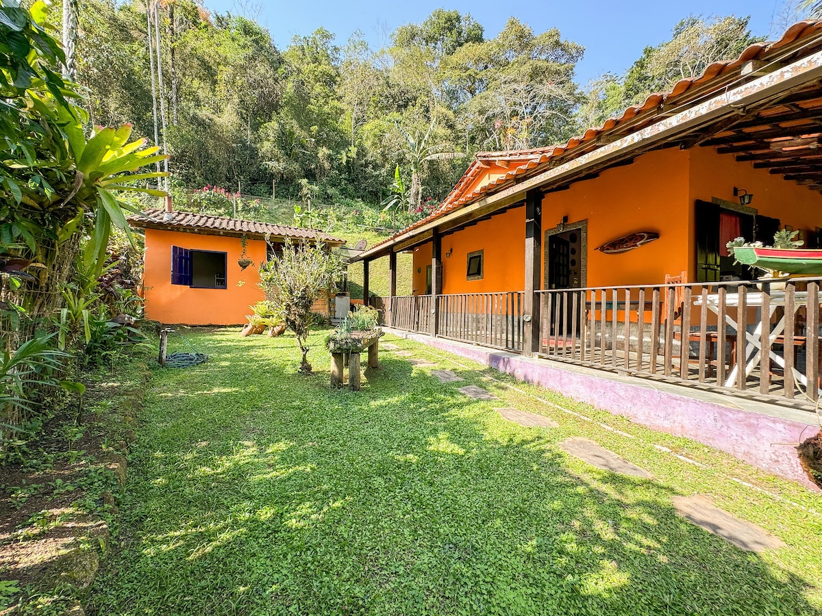 Očarljiva hiša sredi narave v soseski Ponte Branca v Paratyju. Obkroženo je z atlantskim gozdom in se nahaja v bližini slapov in pohodniških poti Caminho do Ouro. Na voljo sta 2 spalnici, 2 kuhinji (ena s pečjo na drva, pečjo za pico in žarom), balkon za počitek, Wi-Fi in garaža. Zasebnost, udobje in neposreden stik z naravo.