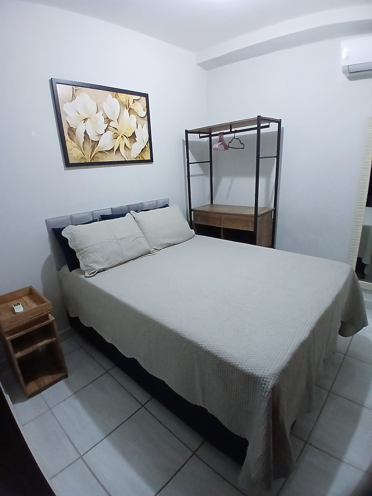 Studio Nossa se nahaja v soseski Santa Monica, poleg UFU, mestne hiše in nakupovalnega središča. Naša garsonjera nima garaže, vendar lahko parkirate na ulici pred stavbo. Če želite, stopite v stik z nami prek klepeta v aplikaciji, da preverite možnost, da prejmete posojilo v stavbi. Na voljo imamo zakonsko posteljo in vzmetnico (model futona, dolg 1,7 m, širok 60 cm in debeline 11 cm - »zelo udobni«), ki sprejmeta 3. gosta.