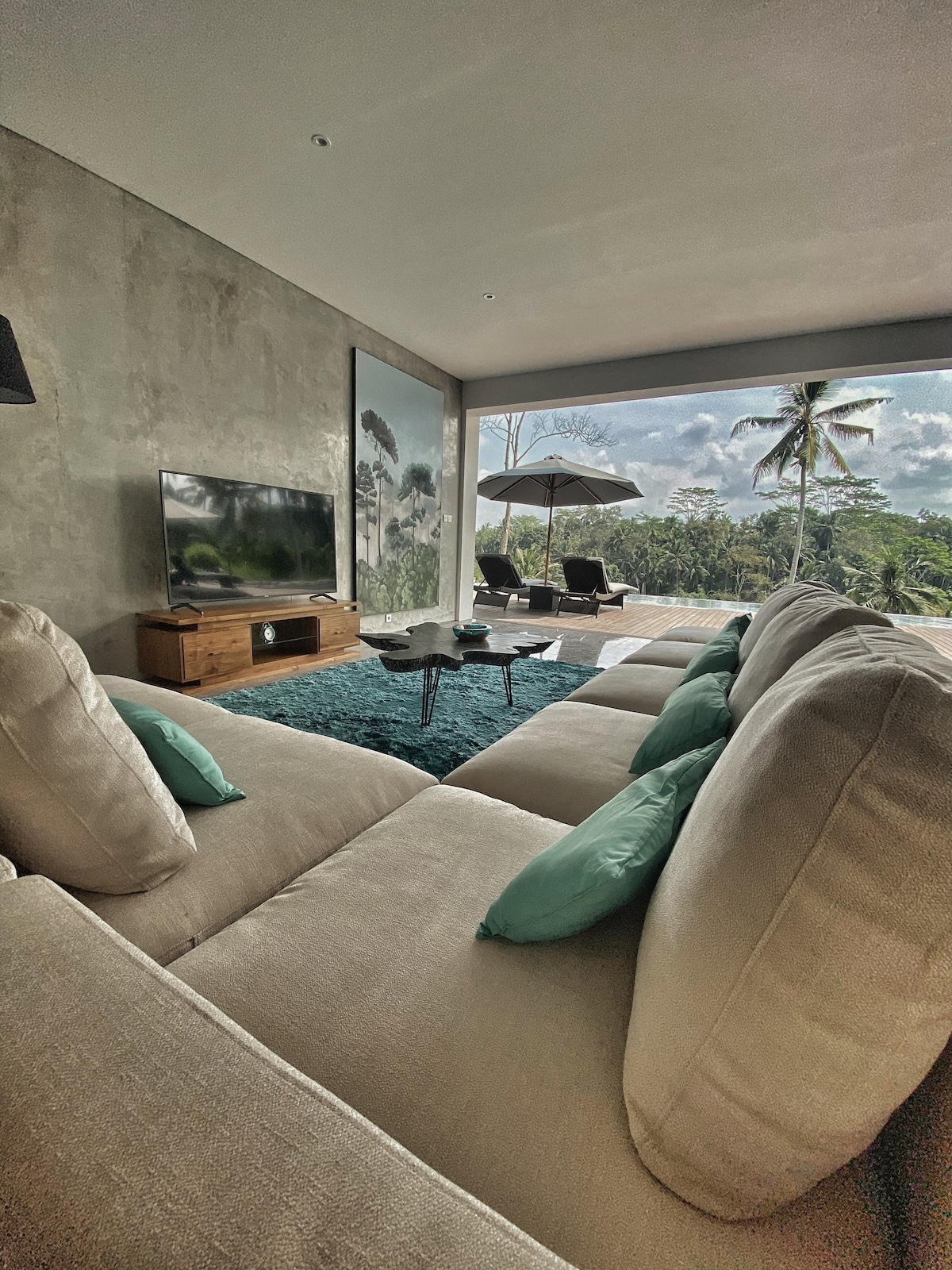 Naj vaše skrbi izginejo v udobnem paviljonu s pogledom na vaš zasebni bazen s slano vodo in osupljiv vrt. Izperite pod deževno prho v veliki vrtni kopalnici na prostem, nato pa se sprostite v vrtnem paviljonu ter uživajte v riževem polju in pogledu na tropski vrt. Vila Via je razkošna in zasebna ter vključuje prostorno spalnico z veliko zakonsko posteljo s štirimi posteljami, lastno garderobo in kopalnico. Dnevni prostor gleda na čudovit vrt in bazen za popolno sprostitev.