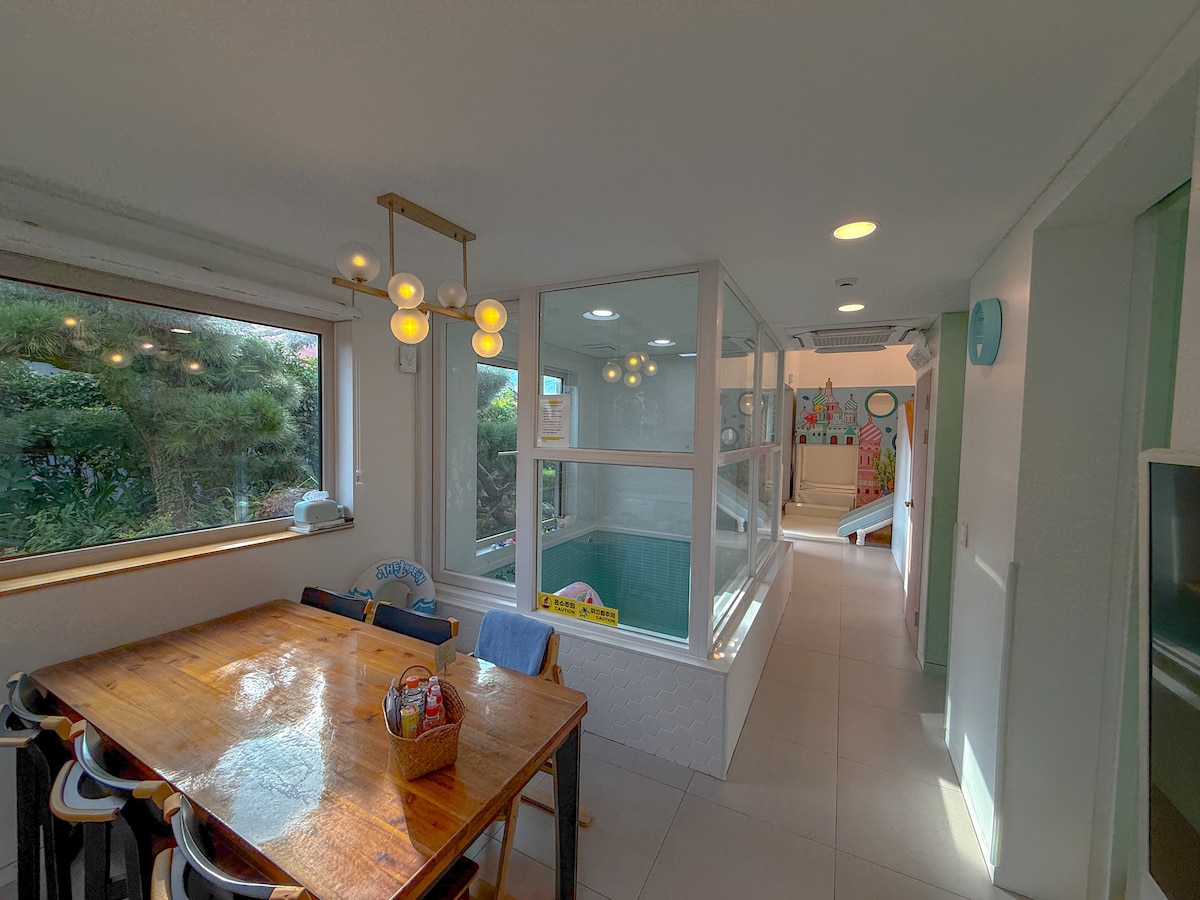 Jeju zasebni penzion za pare in družine, notranji jacuzzi, bazen, plaža Pyeongdae, plaža Sehwa