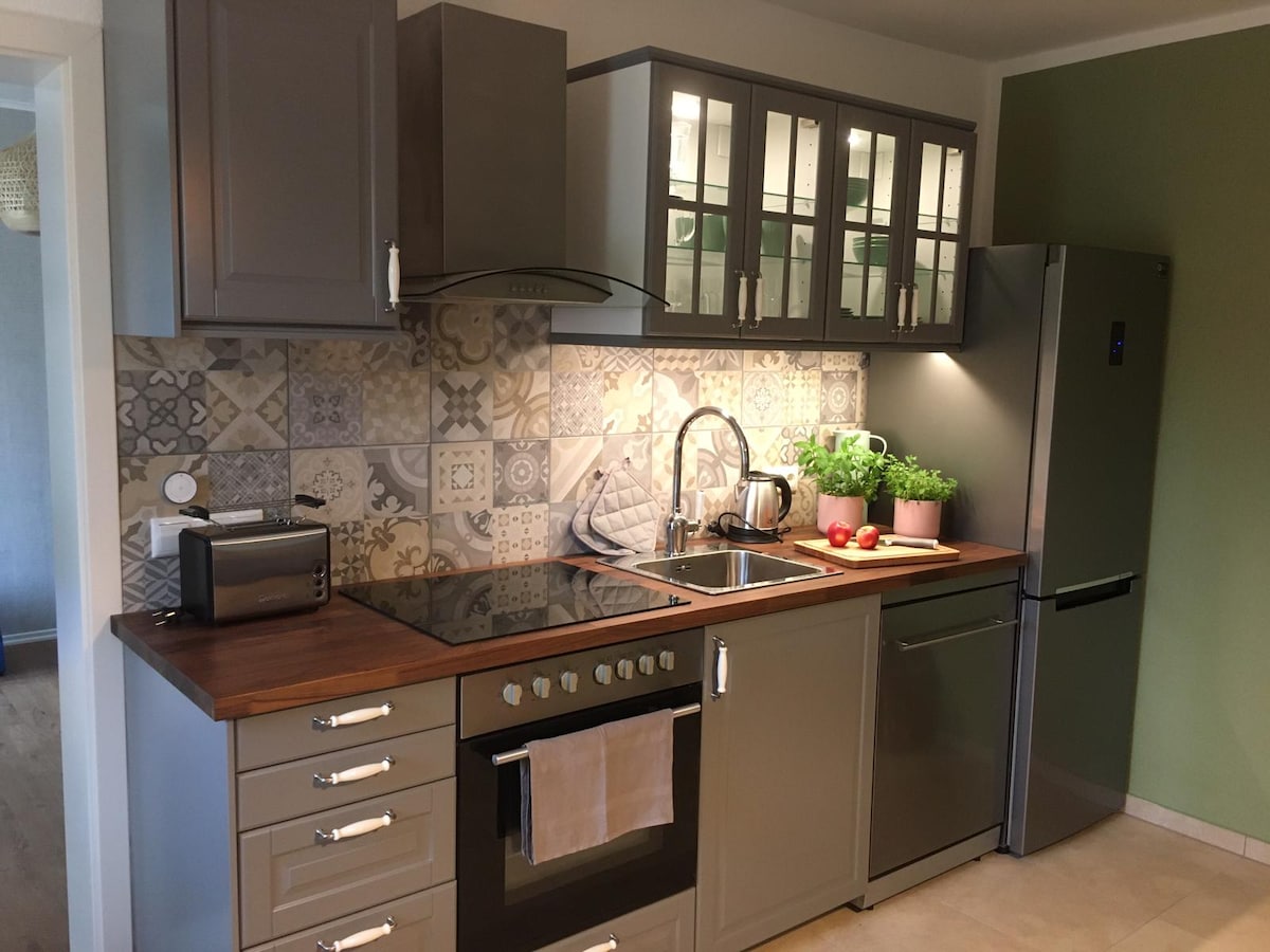 Dobrodošli v našem malem stanovanju v Wolgastu! Elegantna zasnova in le 10 minut od plaže sta idealno izhodišče za sproščujoče dneve. Spalnica, kuhinjska niša in udobna terasa ne puščajo ničesar zaželenega. Po želji so na voljo: plažni stoli za sončne ure, električni skuterji za prilagodljivo raziskovanje in masažna kad (od 20. maja) za sproščujoče večere. Vaše počitnice, vaša izbira! Uživajte v sproščenem vzdušju Usedoma in izkusite nepozabne trenutke.