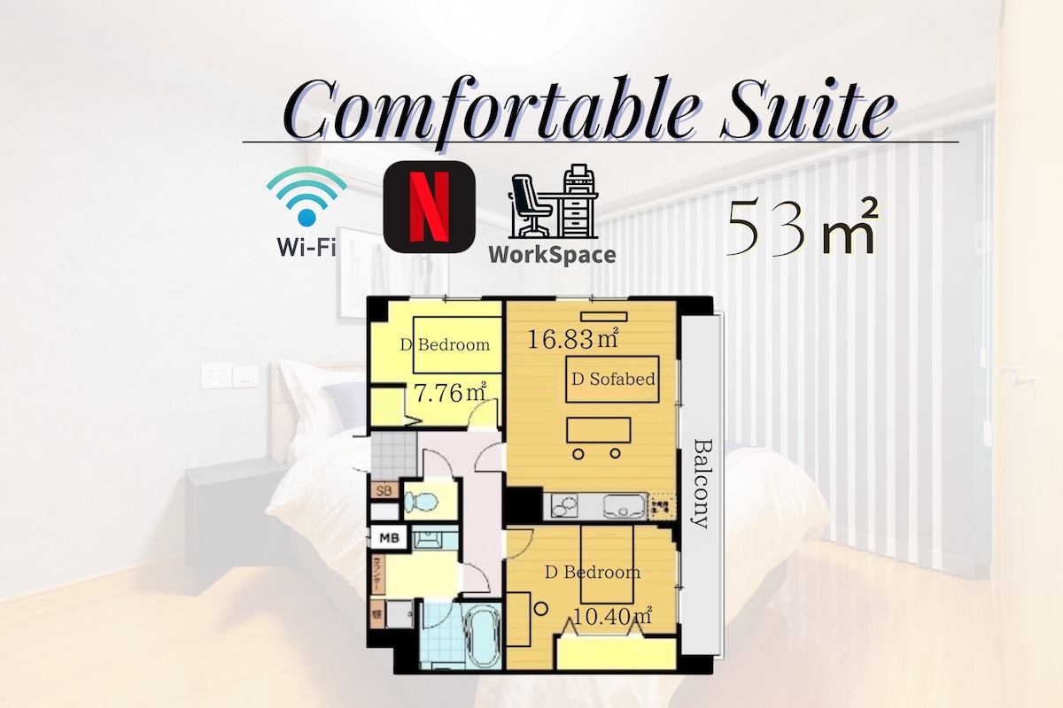 * Površina sobe 70 kvadratnih metrov * Zahodnjaška soba za 4 osebe ima dve standardni zakonski postelji (147 * 200 cm) Muji lesena postelja * Japonska soba za 4 osebe ima 2 standardni zakonski postelji (147 * 200 cm) z vzmetnicami Muji * V odprti sobi lahko dodate dve enojni postelji (dodatna postelja 2000 jenov) Ta soba ima prostorno kuhinjo in jedilnico, ki je odlična za družine, ki potujejo skupaj. * Kopalniška oprema TOTO, udobna kopalna kad, straniščna školjka, umivalnik, idealno za vročo kopel po celodnevnem potovanju, da se sprostite in počutite kot doma!