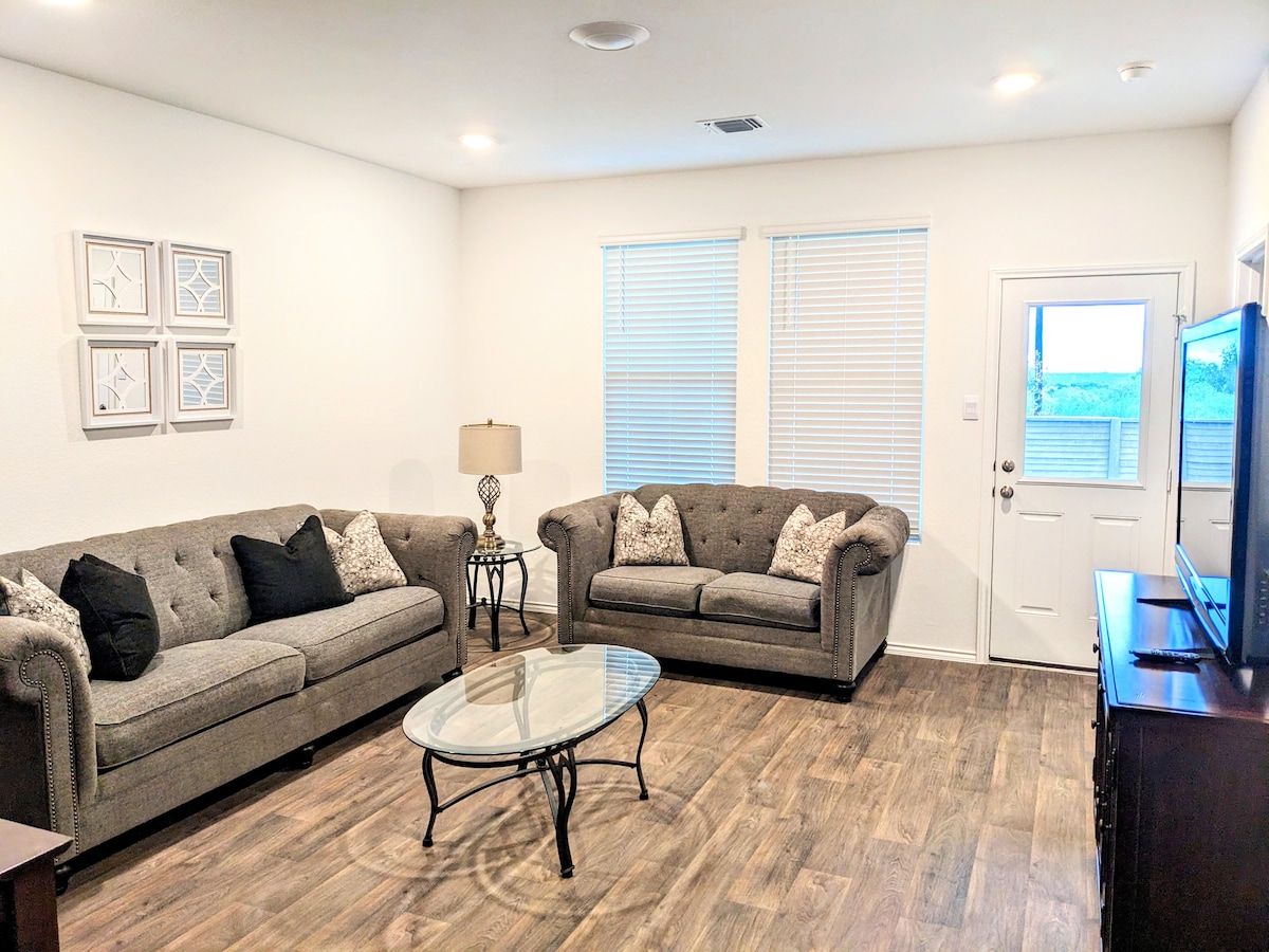 Dobrodošli v svojem novem drugem domu. Ta oaza se nahaja na priročni lokaciji 20 minut od Austina, 45 minut od San Antonia in 10 minut od San Marcosa. Uživajte v bližnjih tovornjakih s hrano ali pa pustite, da se otroci zabavajo na igrišču ali v bazenu v soseski. Elegantna notranjost vključuje sodobno udobje, kot so 75-palčna televizija, internet, igre, zunanja terasa, ognjišče in še več. Od bolnišnice vas loči manj kot miljo, od restavracij, trgovin, H-E-B, pasjega parka in avtoceste I-35 pa boste oddaljeni manj kot miljo.