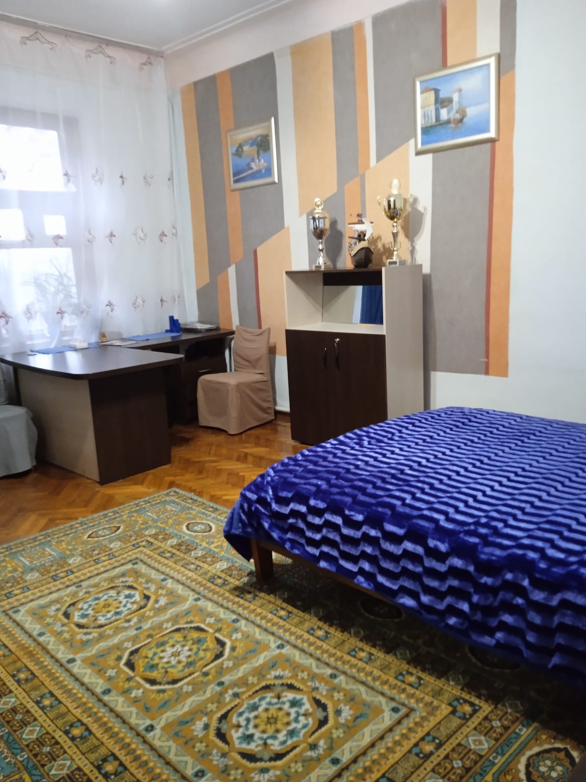 Soba(modra) v središču Kijeva z balkonom.