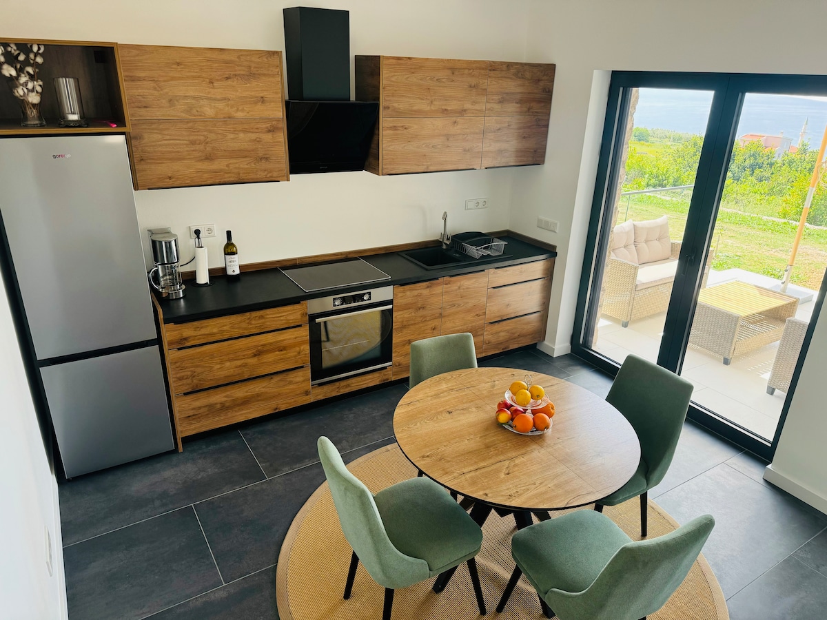 Comfortable and fully equipped apartment located just 180 meters from the beach. The apartment features a private terrace with a beautiful sea view, perfect for relaxing mornings and evenings. Guests can enjoy free Wi-Fi, free private parking, and a fully equipped kitchen with everything needed for a comfortable stay. Designed to feel like home, this apartment is ideal for couples, families, or friends looking for a peaceful seaside getaway.