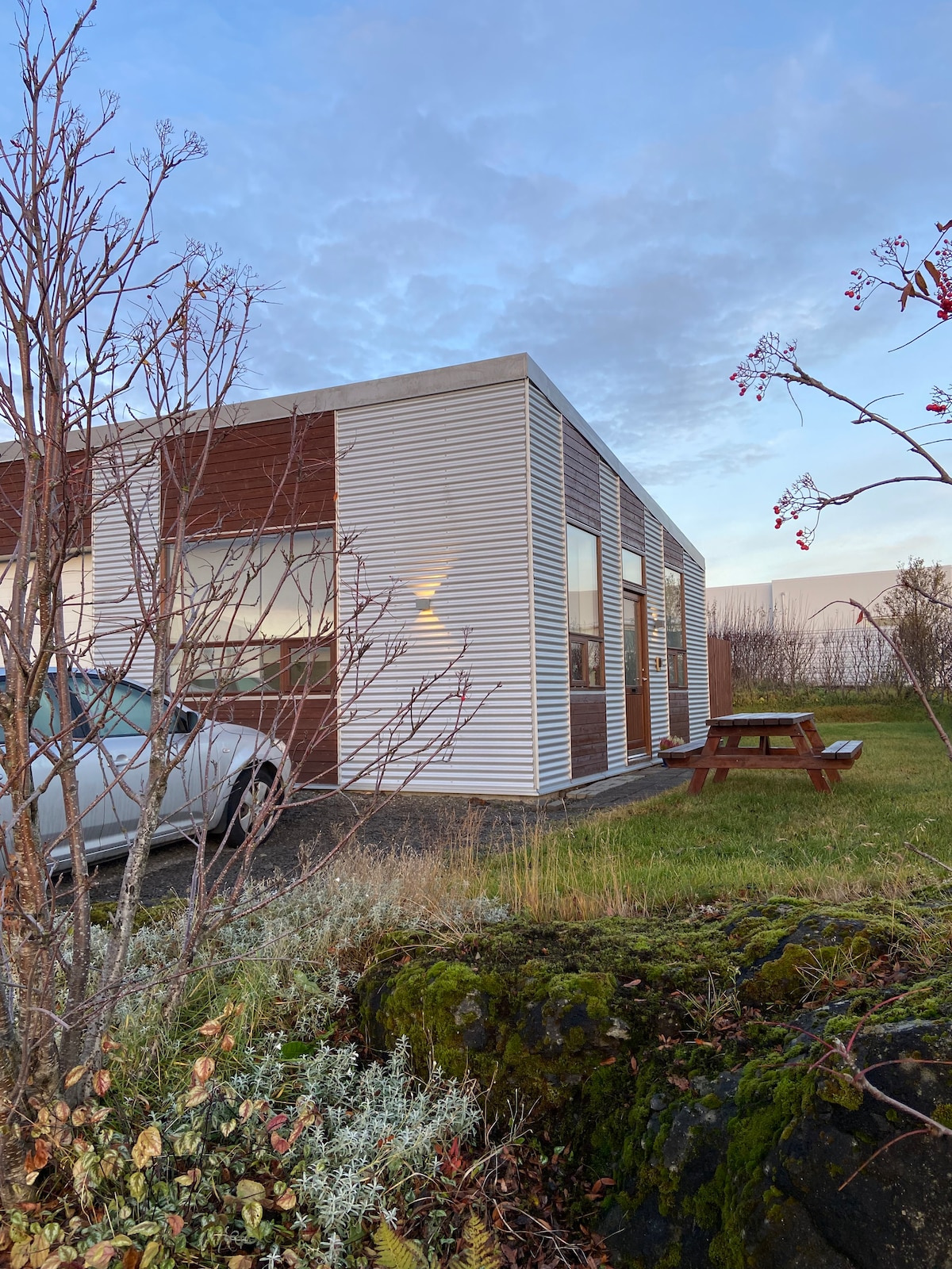 Novo zgrajena (30m2) oaza na začetku Zlatega kroga, 12 km od Reykjavika. Priročna lokacija kot vozlišče ob uživanju v izletih in raziskovanju Reykjavika in okolice. Hiša je zaščitena z visokimi drevesi in rastlinjem, ponuja zasebnost in uživa v razgledih na goro Esja. Na posestvu lastnik upravlja trajnostno in ekološko zelenjavno kmetijo, tako na prostem kot v ogrevanih rastlinjakih. Kadar se ne uporablja kot najemna nepremičnina, se dom uporablja kot obrtniška delavnica.