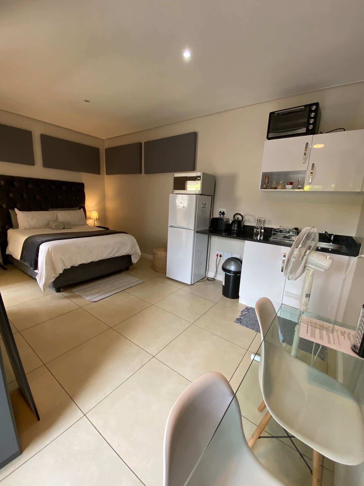 This comfortable guest suite, accommodates 2 people and offers a double size bed. This self-contained unit is in a secure area close to town and shopping centers. It is situated on a residential property with it's own entrance. Includes WiFi and Netflix. No Dstv. Please note it is a strict 1 pet policy, and small pets only. This unit is not suitable for stove cooking. A microwave and air-fryer are available in the unit for light cooking.