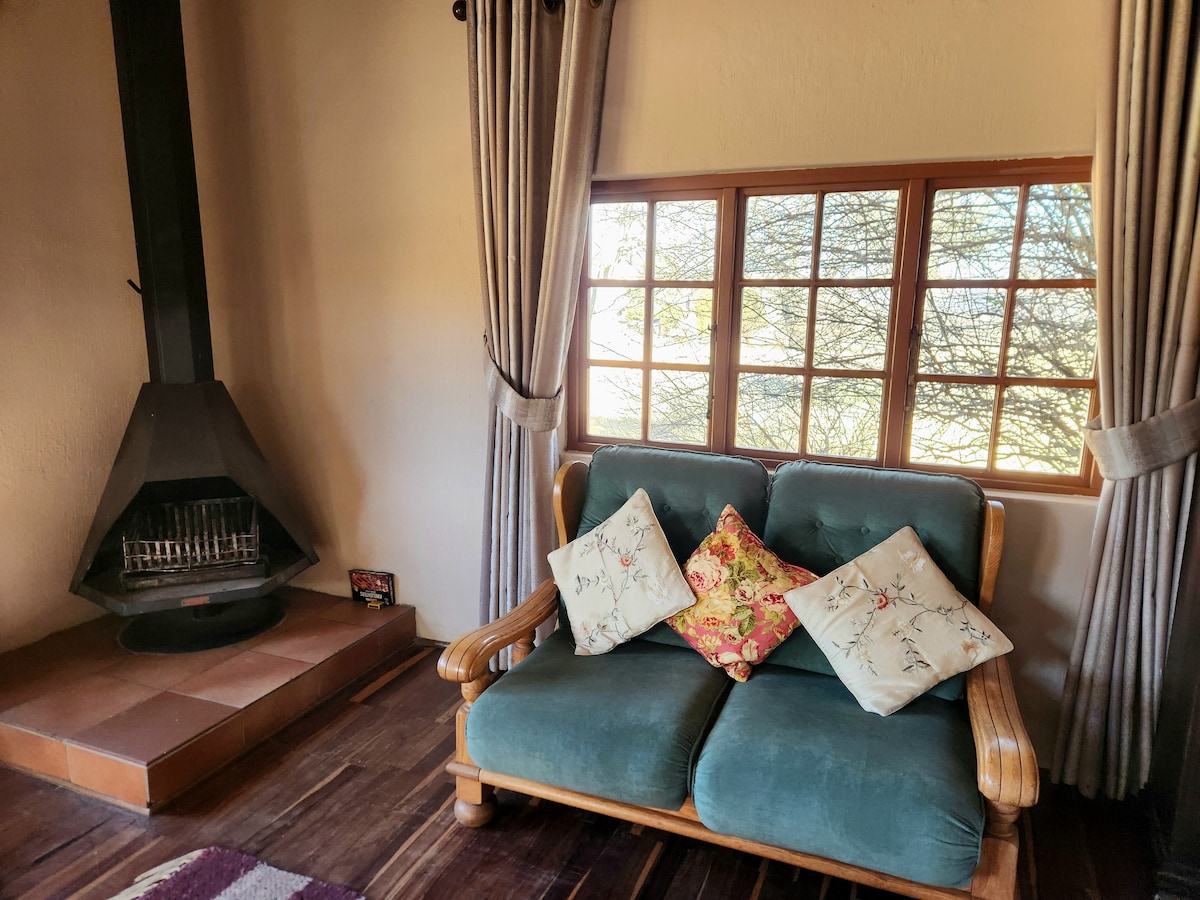 Sprostite se v tem edinstvenem in mirnem oddihu, ki se nahaja visoko na gori Mt West, vendar na pragu živahne vasi Nottingham Road! Dodatna zakonska postelja in najkakovostnejša posteljnina za optimalno udobje. Popolnoma smo odmaknjeni od električnega omrežja z lastno svežo izvirsko vodo, sončno energijo in vročo plinsko prho, zato si privoščite premor od razlitja bremena! Uživajte v panoramskem razgledu na gore Drakensberg in prijetnem lesenem ognju z dobro steklenico rdeče barve ter uživajte v čudovitem oddihu!