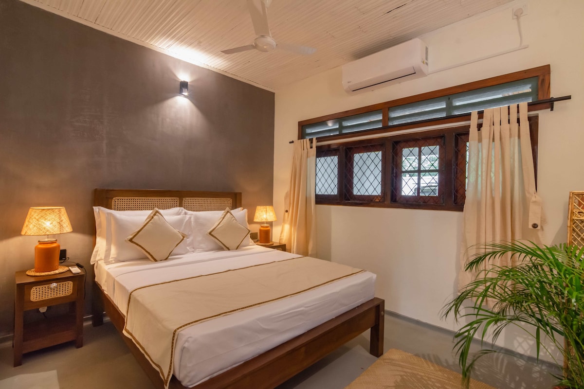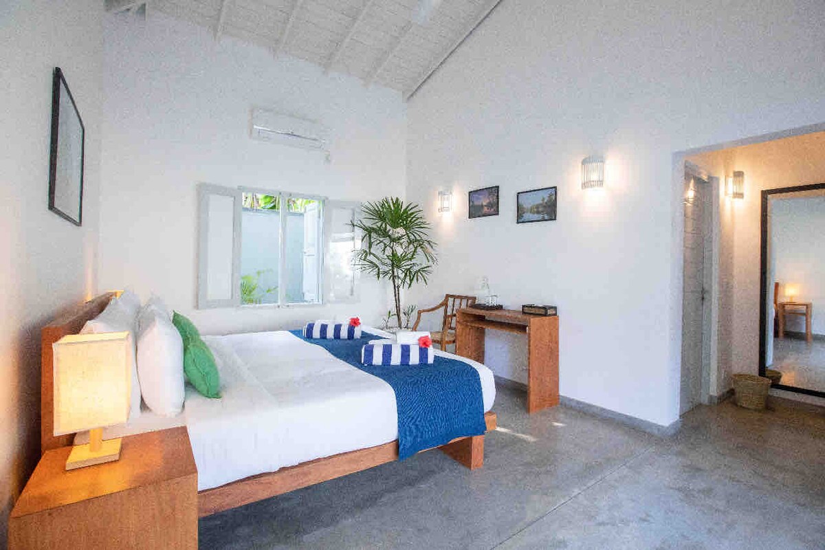 Unser stilvolles Zimmer in Ahangama bietet eine perfekte Mischung aus modernem Komfort und tropischem Charme. Mit einem gemütlichen Kingsize-Bett, einem eleganten Badezimmer mit Regendusche und einer privaten Terrasse mit Blick auf den Garten und den großzügigen Pool ist es der ideale Rückzugsort. Natürliche Materialien und ein helles, luftiges Design schaffen eine entspannende Atmosphäre – perfekt, um die Schönheit Sri Lankas zu genießen.