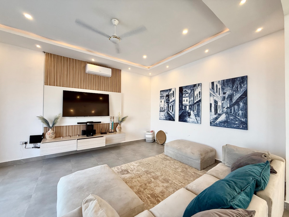Welcome to Nungwi’s first & only Villa with a Private Rooftop Pool, offering privacy & modern comfort. Perfect for couples, friends, or families, this villa features 2 Ensuite bedrooms, a living room, & a fully equipped kitchen. Relax on your private rooftop terrace with a pool, lounge area, & bathroom. Completely solar-powered, the villa ensures uninterrupted comfort with WiFi. Breakfast & drinks are available upon request. Free delivery from BARAKANA, top-rated & affordable restaurant .