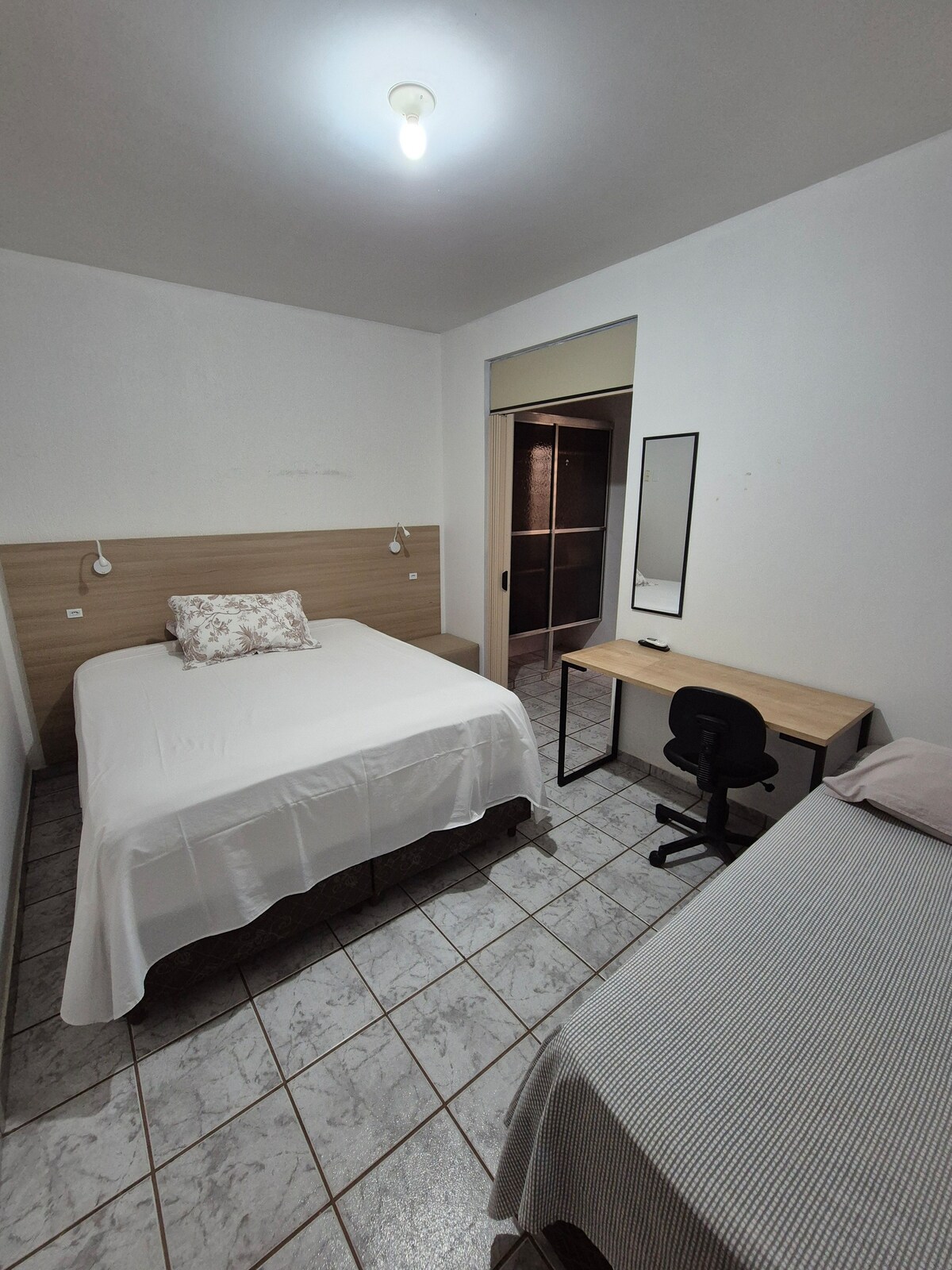 Privilegirana nastanitev na eni od glavnih avenij Cuiabá. Nahaja se poleg univerz Unic, Univag in UFMT, ki so dostopne do barov in nakupovalnega središča. Prostor: Stanovanje v ograjenem stanovanju, ki je nadzorovano 24 ur na dan. Ima klimatsko napravo v sobi, polno kuhinjo, posteljnino in kopalniško posteljnino, pametno televizijo z dostopom do Netflixa in 24-urno priročnost. Druge pripombe: Stavba nima dvigala, zato se je treba povzpeti po nekaj stopnicah. V stanovanju je prepovedano kaditi. Bazen - od 7.00 do 21.00,