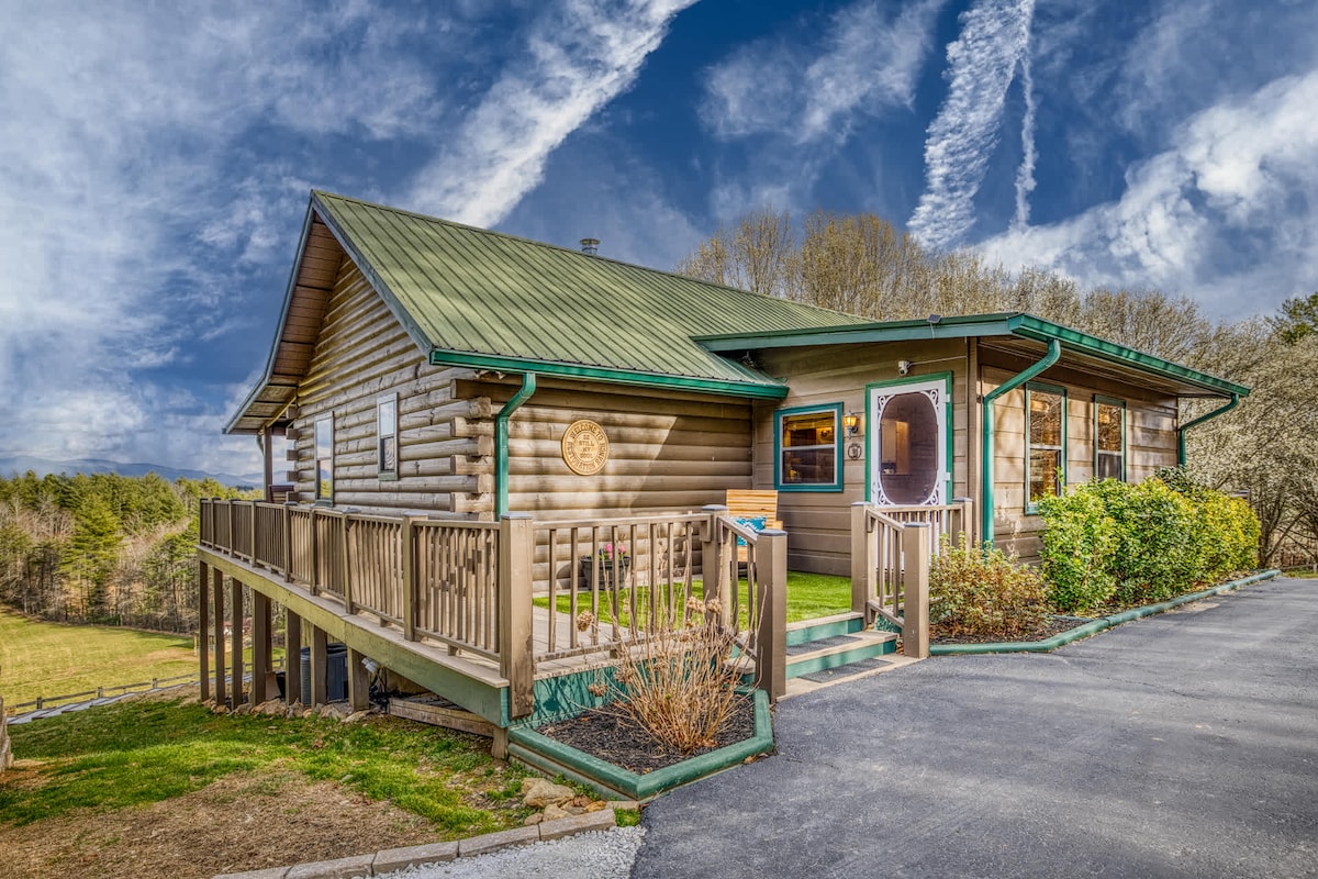 Umaknite se v gore in stopite v Cascading View Lodge, kjer vas bodo pozdravili z neverjetnim razgledom na gore na dolge razdalje. Ta luksuzna koča je oddaljena <20 min od središča Blue Ridgea. Uživajte v razgledu na gore na verandi in prostorni terasi. Nudimo ognjišče pod zvezdami in masažno kadjo, kjer lahko uživate z družino in prijatelji! Za vaše udobje vam nudimo 5 pametnih televizorjev, hiter Wi-Fi, igralnica z arkadno igro in še več ter popolnoma opremljena kuhinja! Dovolite, da vam pomagamo načrtovati potovanje.