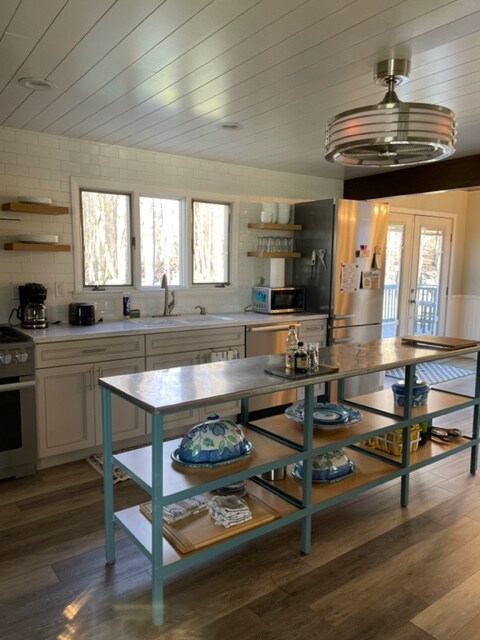 Ponovno se povežite z naravo v tem nepozabnem prenočišču. Pobegnite v naš prenovljeni skedenj na 44 hektarjih eko-paradise. Doživite sodobno kmečko življenje s 25-metrskimi stropi, odlično sobo s čudovitim razgledom, popolnoma opremljeno kuhinjo, zakonsko posteljo v velikanski spalnici v mansardi in udobnimi plinskimi štedilniki. Pohod, kajak ali ribe na jezeru 100 hektarjev, krmo za divje jagode in klančine v sezoni ali pa pojdite na smučanje na Elk Mountain tik ob cesti. Edinstvena spokojnost in rustikalno, naravno razkošje v divjini Pensilvanije.