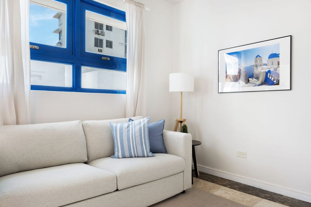 Odpočijte si od nomadskega življenja v tem sodobnem in domačem stanovanju, ki ga obdaja zasebna terasa. Uživajte v jutranjem raztezanju v modriki in koralni zakonski postelji. Donirajte nekaj ur branja v visečo mrežo. Spustite se v bazen. Rezervirajte sobno masažo z enim od naših čarobnih maserjev. Ali pa obiščite barvite stenske poslikave in klepetljive kavarne Santurce. Nomadova kuhinjska niša, hiter Wi-Fi in zasebna zunanja prha vas bodo čakali, ko se vrnete.