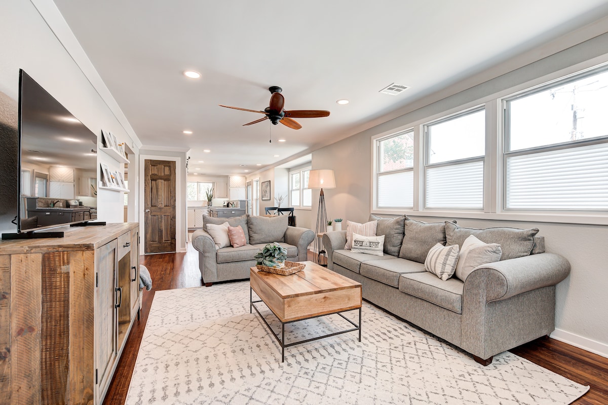 Unwind and refresh in this calm, stylish space. Upscale, minimalist design complete with a pristine chefs kitchen. High end (Cozy Earth) linens throughout, truly a boutique hotel experience with tranquil outdoors spaces! Idyllic mid-town location, nestled into charming Florence Park with mature trees and sidewalks. Easy access to Cherry Street (2 mins), Utica Square (3 mins), Tulsa Fairground and Expo Center (4 mins), Downtown/Art's District (6 mins), and Riverside/Gathering Place (8 mins).