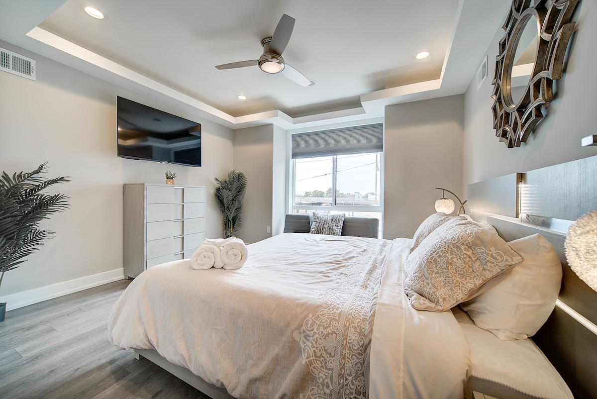 The Philly Zoo Queen Retreat| Parking | Fireplace