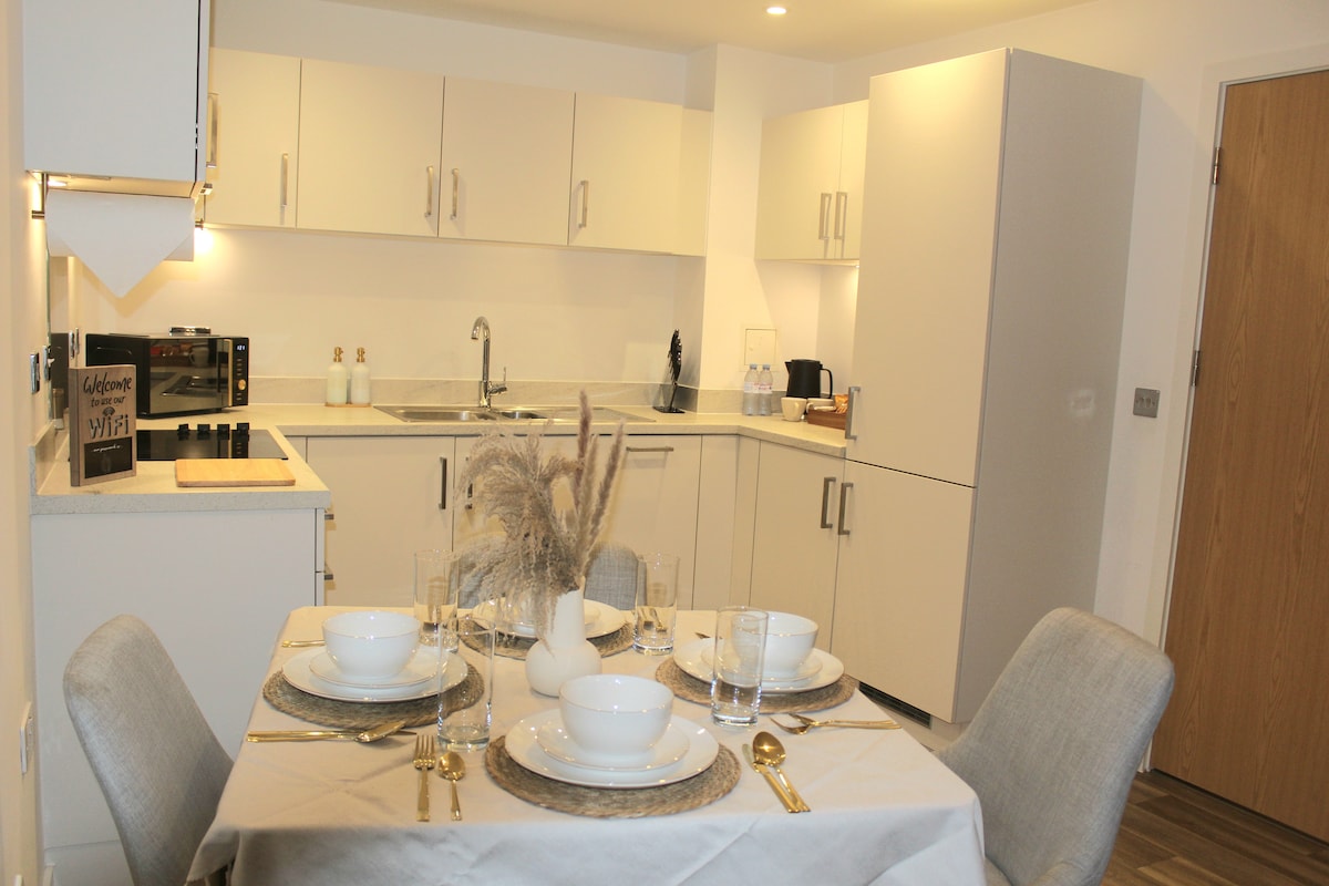 Uživajte v tem elegantnem stanovanju ob kanalu v osrčju Birminghama. Ta prostor je kot nalašč za pare in prijatelje, družine z otroki in starše, ki obiskujejo študente. Ta prostor vam omogoča, da raziščete mesto, nato pa se vrnete, da se sprostite v dnevnem prostoru odprtega tipa ali pa se umaknete v dve spalnici in dve kopalnici, da zagotovite dodatno zasebnost. Sprehodite se do nočnega življenja, prizorišč in glavnih znamenitosti, kot sta Legoland ali Sea Life. Uživajte v prilagodljivem prihodu/odhodu in zavarovanem parkiranju v sklopu namestitve, da bo vse preprosto.
