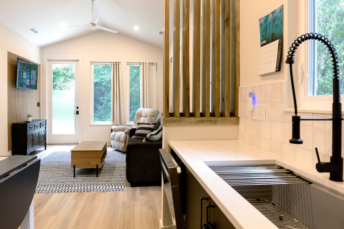 Idealna lokacija v vašem malem raju. Po makadamski cesti s prostorno zunanjo teraso, obdano z naravo, vendar nekaj manj kot 3 milje od plaže Wrightsville. Deska za deskanje, kolesa, zunanja prha in kajak s strešnimi trakovi! S kolesom do pivovarne Wrightsville Beach ali trgovine s steklenicami Seagate. Raziščite Airlie Gardens! S kolesom pridite do kampusa UNC. Leta 2023 je bila zgrajena mini-hiška z obokanimi stropi. Vemo, da boste s pozornostjo do detajlov in pozornosti ves čas usmerjeni k temu, da se boste želeli vrniti