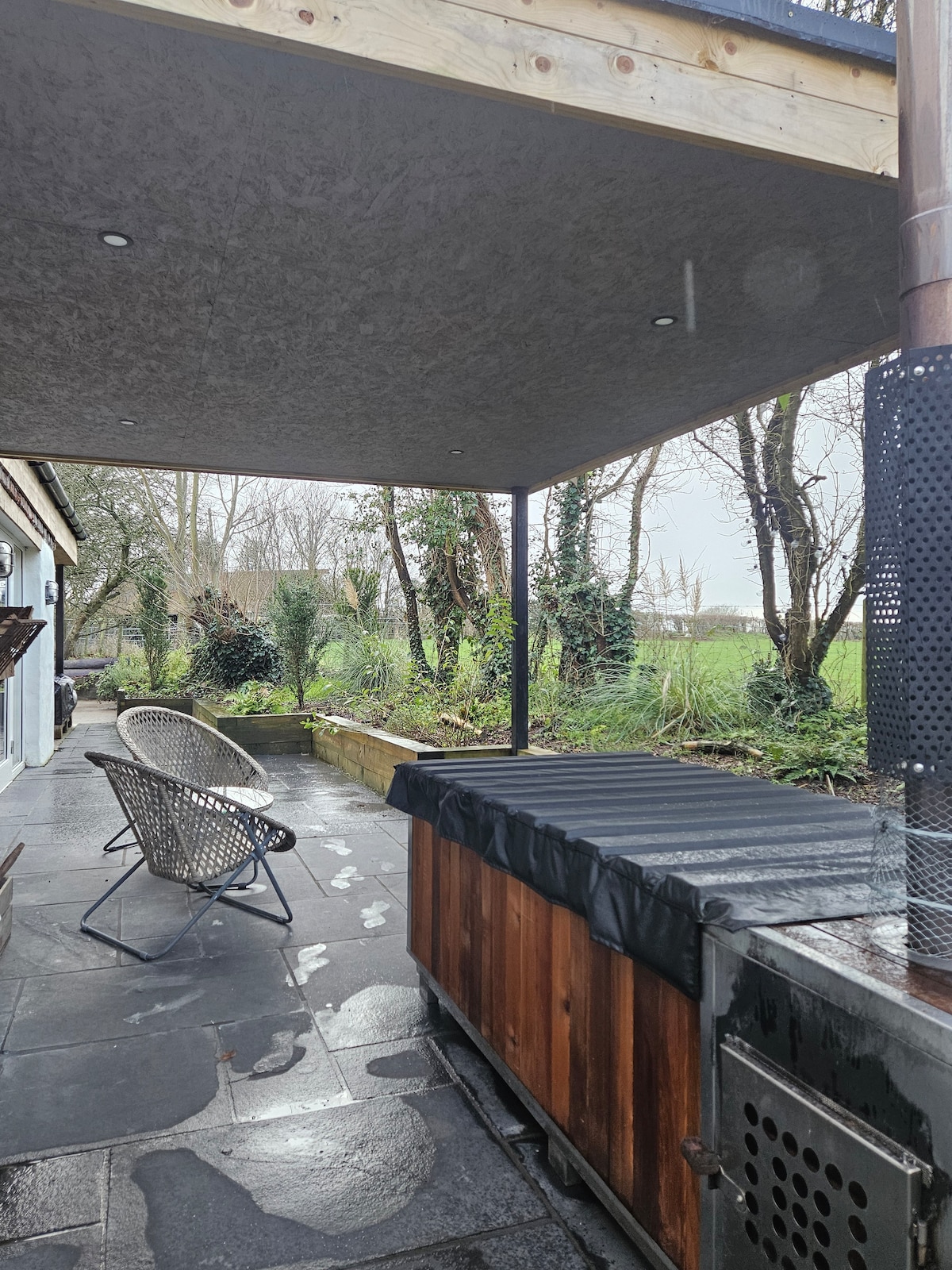Sprostite se v naši zasebni masažni kadi, ki je na odlični lokaciji za razgled na mirno jezero. Uživajte v osupljivih sončnih zahodih in opazovanju zvezd ponoči, medtem ko uživate v toplih in pomirjujočih vodah. -*Čudoviti zreli vrtovi: sprehodite se po naših skrbno vzdrževanih vrtovih z raznoliko paleto cvetočih rastlin, visokimi drevesi in udobnimi sedeži. Vrtovi zagotavljajo mirno zatočišče za jutranjo kavo, popoldansko branje ali preprosto uživanje v naravnih lepotah. Za zasebnost so nameščene električne žaluzije.
