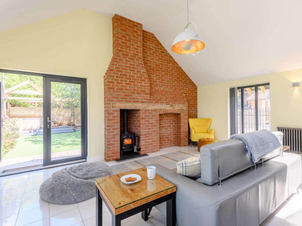 This idyllic country cottage is surrounded by peaceful woodland and fields. Once an 18th-century barn, it has been lovingly restored and what a welcoming place it is. Inside, you'll find a traditional open fireplace, wooden beams and lots of exposed brick. The cosy sitting room is the perfect place to hunker down on cooler evenings, there's ample sofa space for six and a TV to watch films. Upstairs you will find 2 bedrooms and 2 bathrooms, and downstairs there is a 3rd bedroom and bathroom.