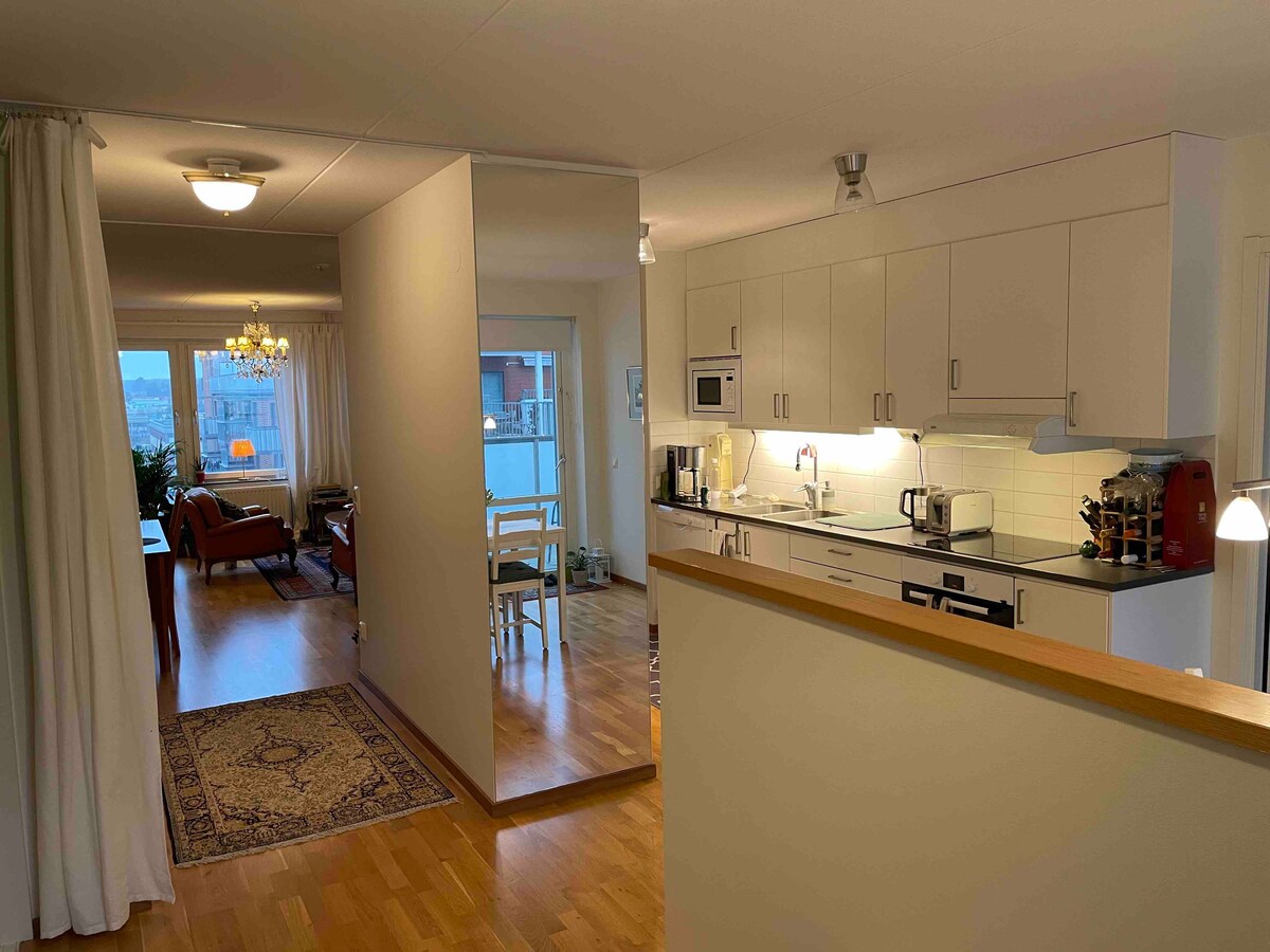 Unik charmig vindsvåning på 120kvm med 3.40 i takhöjd . 3 rum och kök och med stor balkong på taket med utemöbler och gasol grill. Utanför har du stora fina parker och lekplatser. Fina vandringsleder och Fyrisån run hörnet. Lugnt och mysigt område. En promenad på ca 15 minuter längs Fyrisån tar dig till centrum,eller alternativt har du 1minut till stadsbussarna. Parkering för bilfinns tillgänglig.