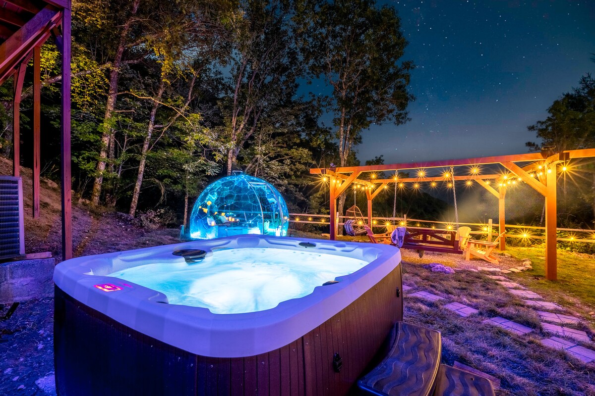 Približno 18 minut od središča Ashevilla. To boho-chic prenočišče je bilo čudovito zasnovano s sodobno opremo in se ponaša z razgledom na gore na dolge razdalje skozi vse leto. Sprostite se v masažni kadi in savni, vadite v našem mini golfu, pripravite gurmanski obrok v naši popolnoma založeni kuhinji, uživajte v obedovanju na prostem, si oglejte film pod zvezdami ali pa se preprosto družite z družino in prijatelji v eni od naših ognjišč.