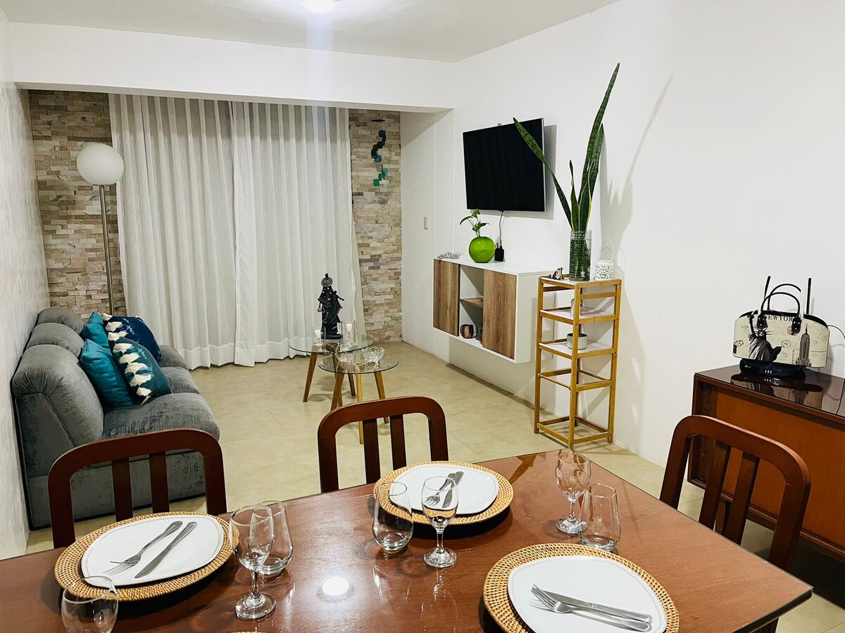 Bienvenid@ a nuestro apartamento en Chiclayo – La Victoria. Estamos ubicados en una de las zonas más bonitas y seguras de Chiclayo. A 5min del aeropuerto, del Real Plaza y del centro de la ciudad, a 2 cuadras del Jockey Club y a pocos pasos del Smart fit y los mejores restaurantes. Contamos en la habitación con una cama Drimer QUEEN. Tendrás acceso a Wi-Fi, en la sala contamos un Smart TV y Netflix. La cocina equipada y vajilla completa. Estoy para ayudarte en lo que necesites. Te esperamos!