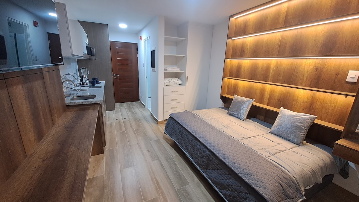 Dobrodošli v idealnem prenočišču v Limi. Naš studio združuje sodobno zasnovo, udobje in neprimerljivo tišino, ki je kot nalašč za poslovne potnike ali turiste, ki iščejo mir ob koncu dneva. Uživajte v tem mirnem in osrednjem bivališču. Svetel, zaseben in miren prostor z notranjim pogledom na zeleno površino. Po dolgem dnevu raziskovanja ali dela se spočijte v udobni zakonski postelji. Ima opremljeno kuhinjo, kopalnico z WC-jem in hitro povezavo Wi-Fi.