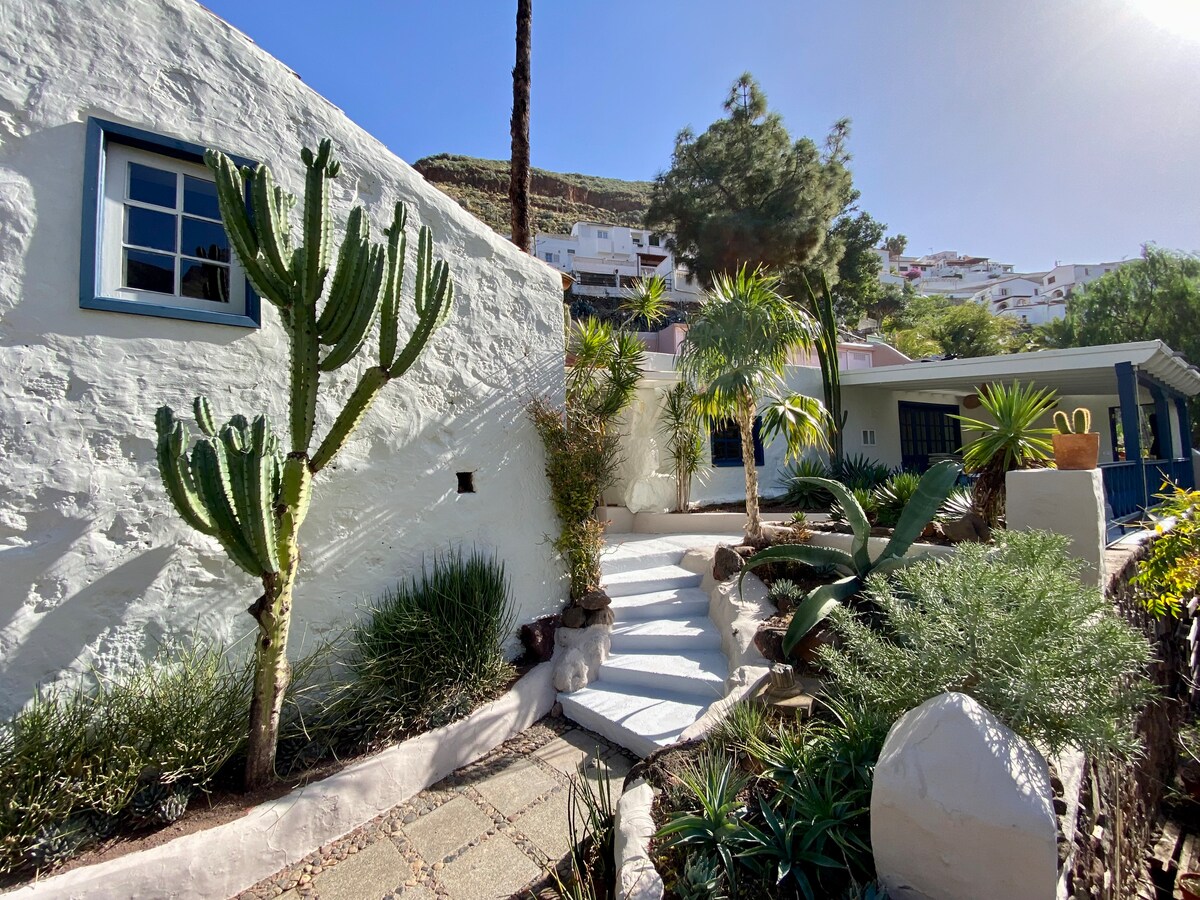 Sprostite se nad Modrim morjem! Čudovita hiša z neverjetnim razgledom na morje in sosednji otok Tenerife, sproščujoče zatočišče, ki je popolnoma opremljeno z vso opremo, spektakularno teraso, od koder lahko uživate v naravnih kopeli in najboljših sončnih zahodih na Kanarskih otokih.
