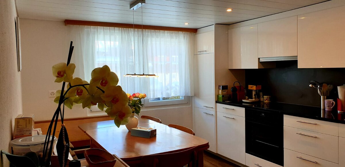 Udobno stanovanje z lastnim vhodom in enojno garažo s polnilno vtičnico za e-avtomobile (potreben je lastni polnilni kabel, 0,35 CHF/kW). Idealno za 1–2 odrasli osebi ali 1 odraslo osebo z 2 otrokoma. Pralni in sušilni stroj sta na voljo v kleti. Čudovit razgled na travnike in gore. Sedež je tik pred hišo. Avtobusna postaja in dobra trgovina sta 100 m stran.
