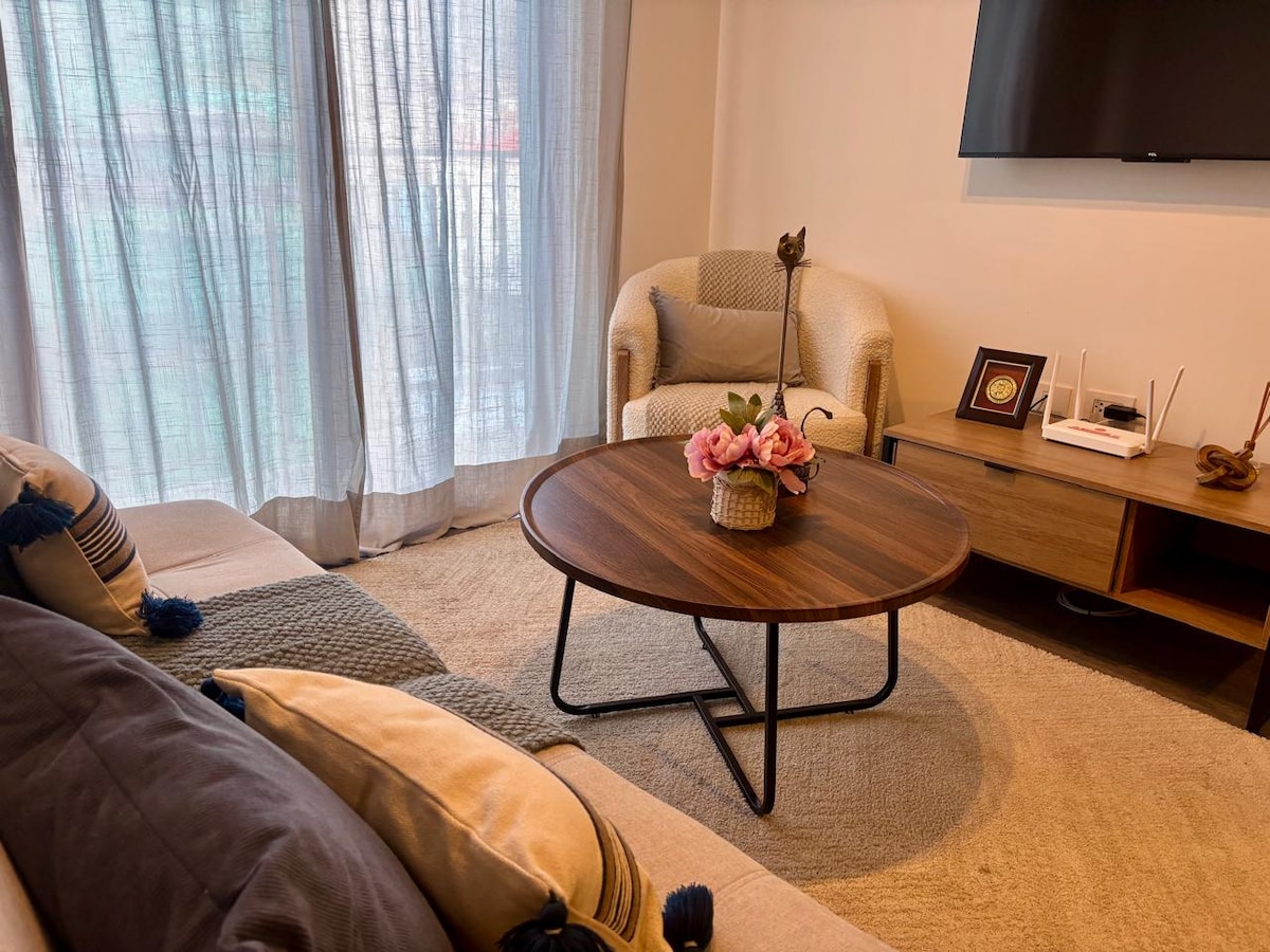 Bivajte v tem elegantnem stanovanju v drugem nadstropju, ki se nahaja v središču mesta. Le nekaj korakov stran od tržnic, restavracij, trgovin, železniške postaje Urubamba, avtobusnega terminala itd. Vključuje 2 spalnici, dnevno sobo, jedilnico, kuhinjo, kopalnico z masažno kadjo in pralnico. Idealno za krajša ali daljša bivanja z visokohitrostnim omrežjem Wi-Fi, ki je idealno za digitalne nomade. Če potrebujete prevoz, oglede in doživetja po meri, se obrnite na nas.
