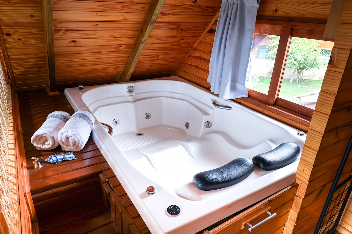 Koča s hidromasažno kadjo in kaminom, 10 km od Urubicija.