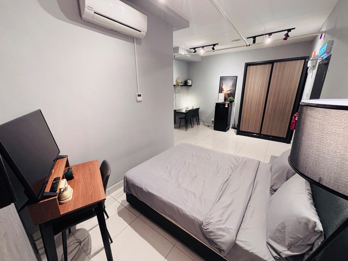 Dobrodošli v našem studiu na čudoviti lokaciji Subang Jaya. Naša udobna enota ima vse, kar potrebujete za udobno bivanje, vključno s 60-palčnim LED-televizorjem z Netflixom/YouTubom/televizijo z najnovejšimi filmi in več kot100 kanali po vsem svetu. Sprostite se, sprostite in uživajte v lahkem kuhanju z našo popolnoma opremljeno kuhinjsko opremo. Območje je zelo dostopno do avtoceste LDP, NKVE. Postaja LRT je oddaljena le streljaj. Poleg tega je pod postajo odlično nakupovalno središče za vse vaše maloprodajne terapije.