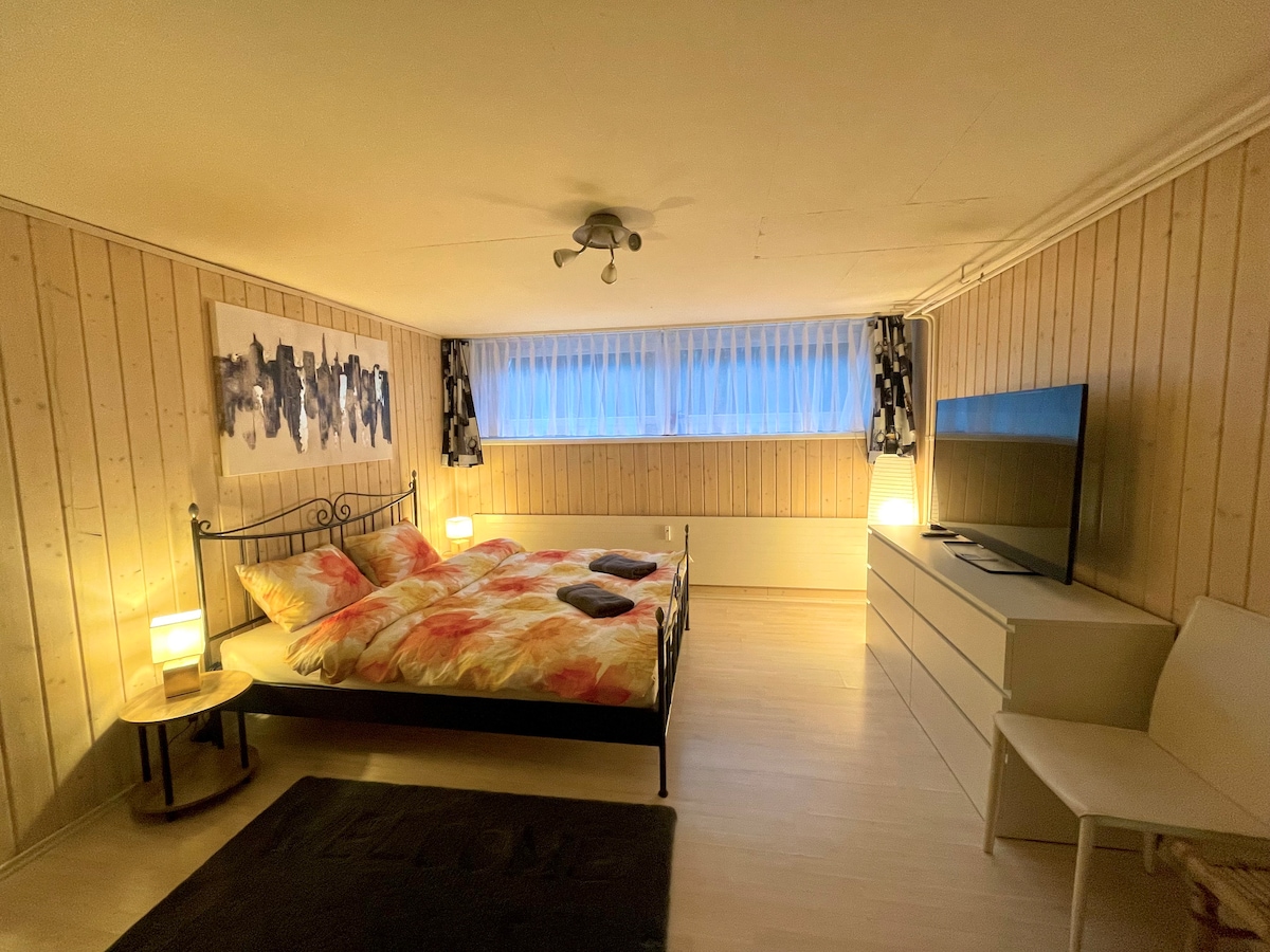 Zelo lepo, veliko in elegantno 1,5 sobno stanovanje, mirno in sončno. Čisto, urejeno in z vso sodobno opremo. Brezplačno parkiranje pred apartmajem. Oddaljenost od lepih gozdov in neverjetnih pokrajin, nekaj korakov stran od javnega prevoza. 20 minut do središča mesta in jezera. Počutite se zelo dobrodošli in uživajte v osebnem dotiku na tej izjemni lokaciji!
