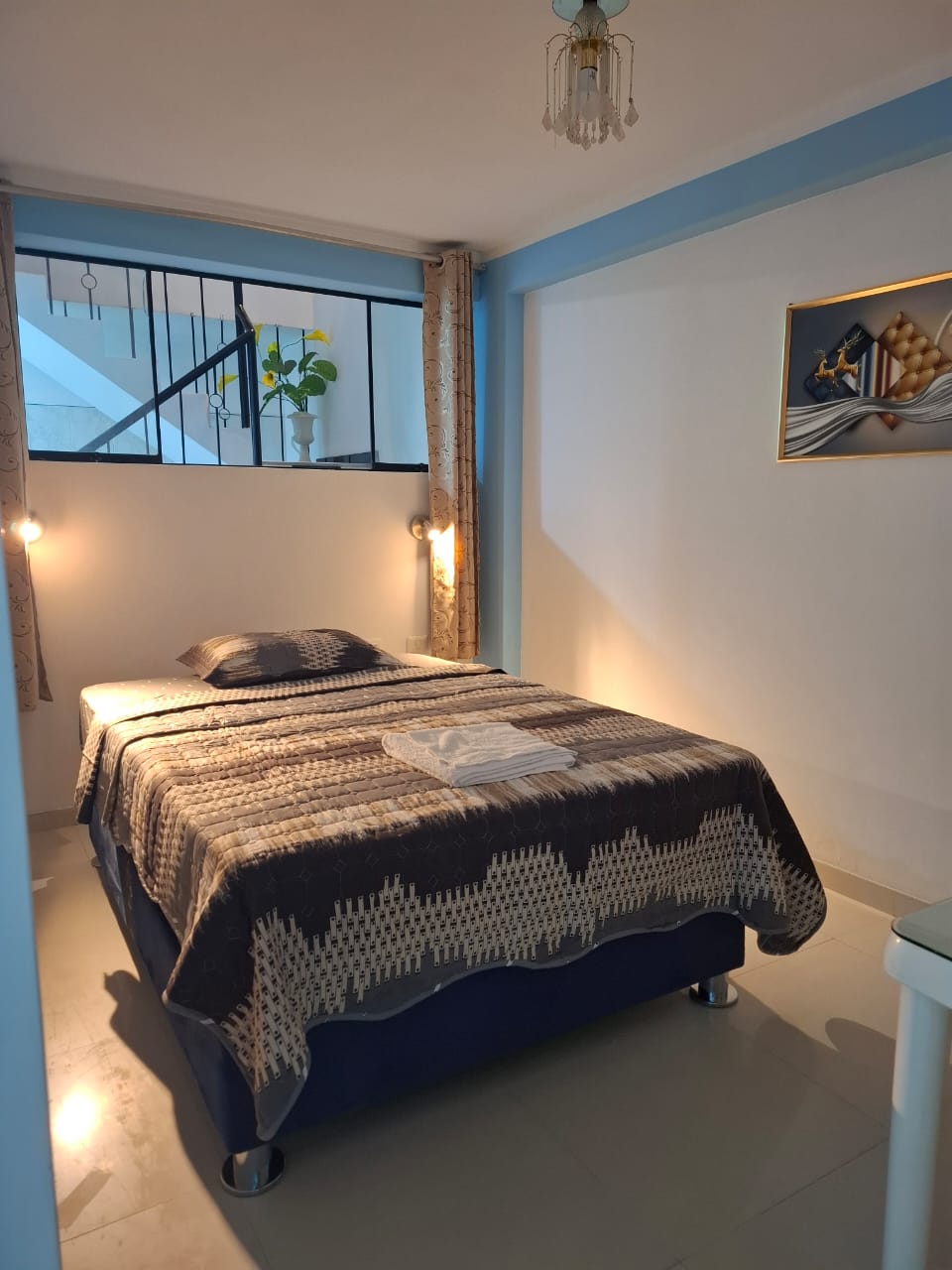 Disfruta de una estadía tranquila en esta habitación matrimonial privada, ubicada dentro de un departamento en primer piso, ideal para parejas que buscan comodidad, privacidad y un ambiente seguro en Bagua Grande.