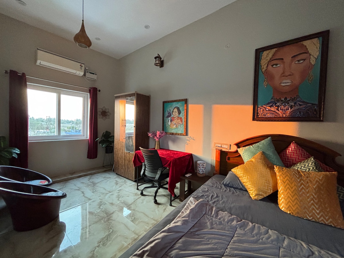To prenočišče je namenjeno tistim, ki imajo čas in želijo uživati v počasnem življenju, izkusiti prostorno bivanje in se sprostiti na vrtu na strehi z masažno kadjo, ki je od plaže oddaljena le nekaj korakov hoje. To prenočišče 2BHK se nahaja v 1. nadstropju in je opremljeno s sodobnimi objekti. Vsaka spalnica ima povezan dostop do zasebne kopalnice. Spalnica 1 ima kad, spalnica 2 pa prostorno prho. Spalnica 2 ima več prostora za shranjevanje, namenski delovni prostor in dostop do balkona, do katerega lahko dostopate tudi prek dnevne sobe.