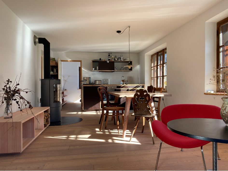 Hišo smo razvili z lokalnimi materiali z ljubeznijo prenovljeno in prenovljeno. Oddamo ga skupinam in družinam ali pa ga uporabljamo kot počitniško hišo. Nahaja se idilično na 1430 metrih sredi travnikov in kmetijskih površin ter je obdan z osupljivim ozadjem 3000-ih glavnih alpskih grebenov. Do vasi St. Jakob s gostilnami in trgovino je le 10 minut hoje. Hiša je zlahka dostopna tudi pozimi na redno očiščeni vožnji.